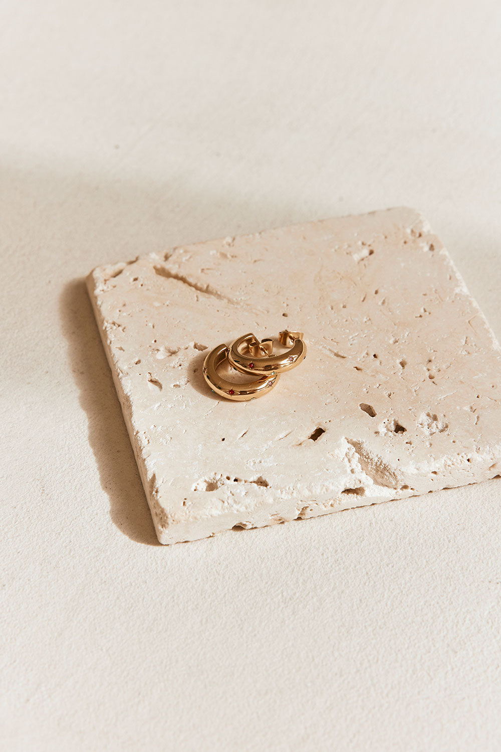 A fun way to dress up your look, the Nadia Earrings are 18k gold plated and feature small hoops with rounded edges and subtle coloured gemstone details.