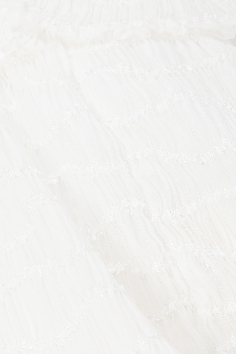 Style it with heels for dinner with the girls! The Adira Playsuit is made from a luscious white fabric and with gathered panels throughout. It features textured stripes throughout, halter neckline with rouleau tie, frill details at neckline and waist and an open back with strappy closure details. Designed exclusively by Sabo.