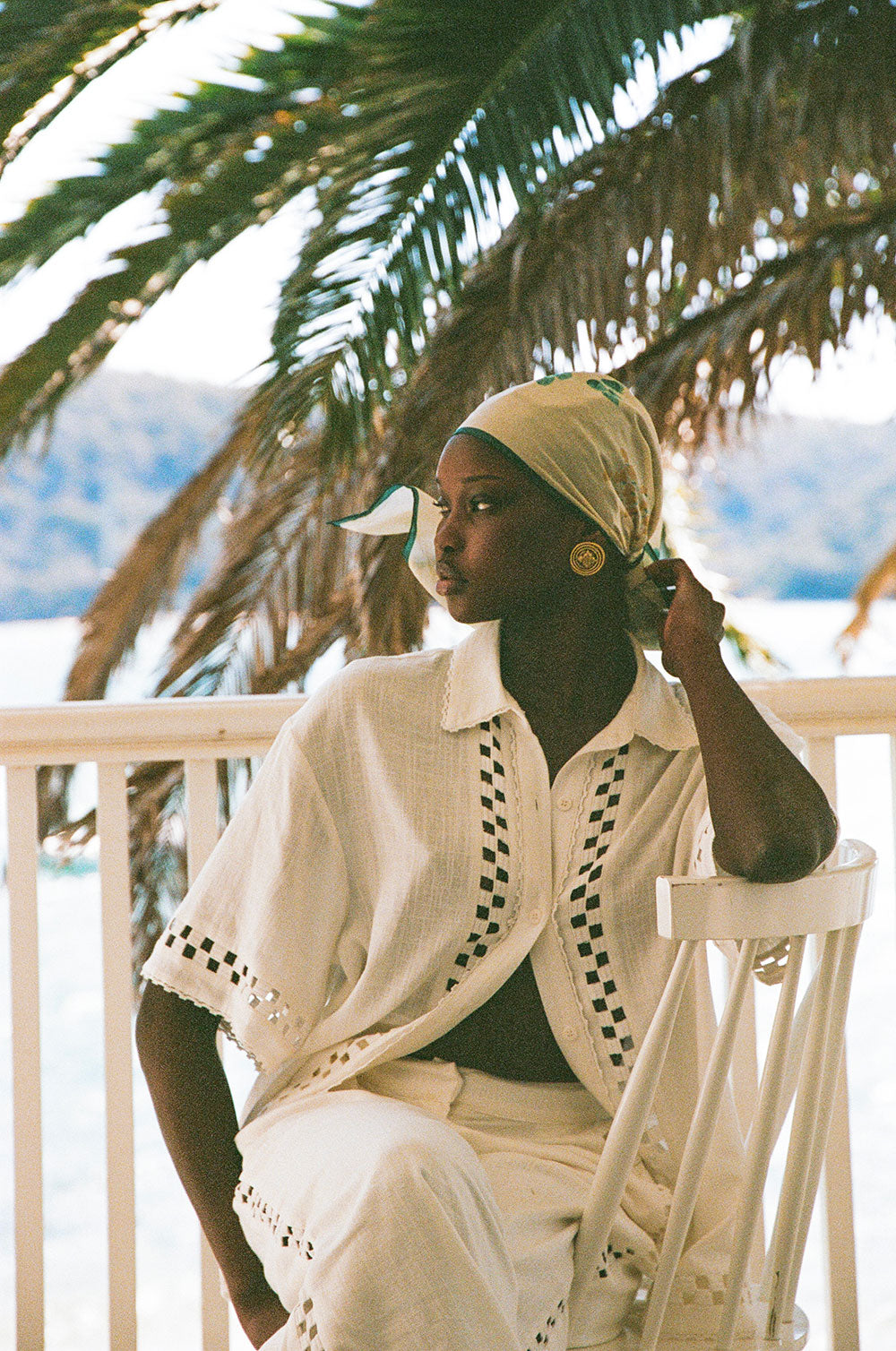 The ultimate resort wear outfit has arrived! The Alyssia Top is made from a high quality sand washed linen viscose blend fabric in an off white hue. It is a relaxed style featuring drop shoulders, short sleeves, collar, buttosn down front and sheer ladder and wavy trim details. Get the set and pair with the Alyssia Pants or Soraya Shorts! Designed exclusively by Sabo.