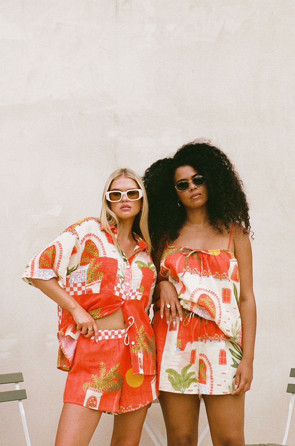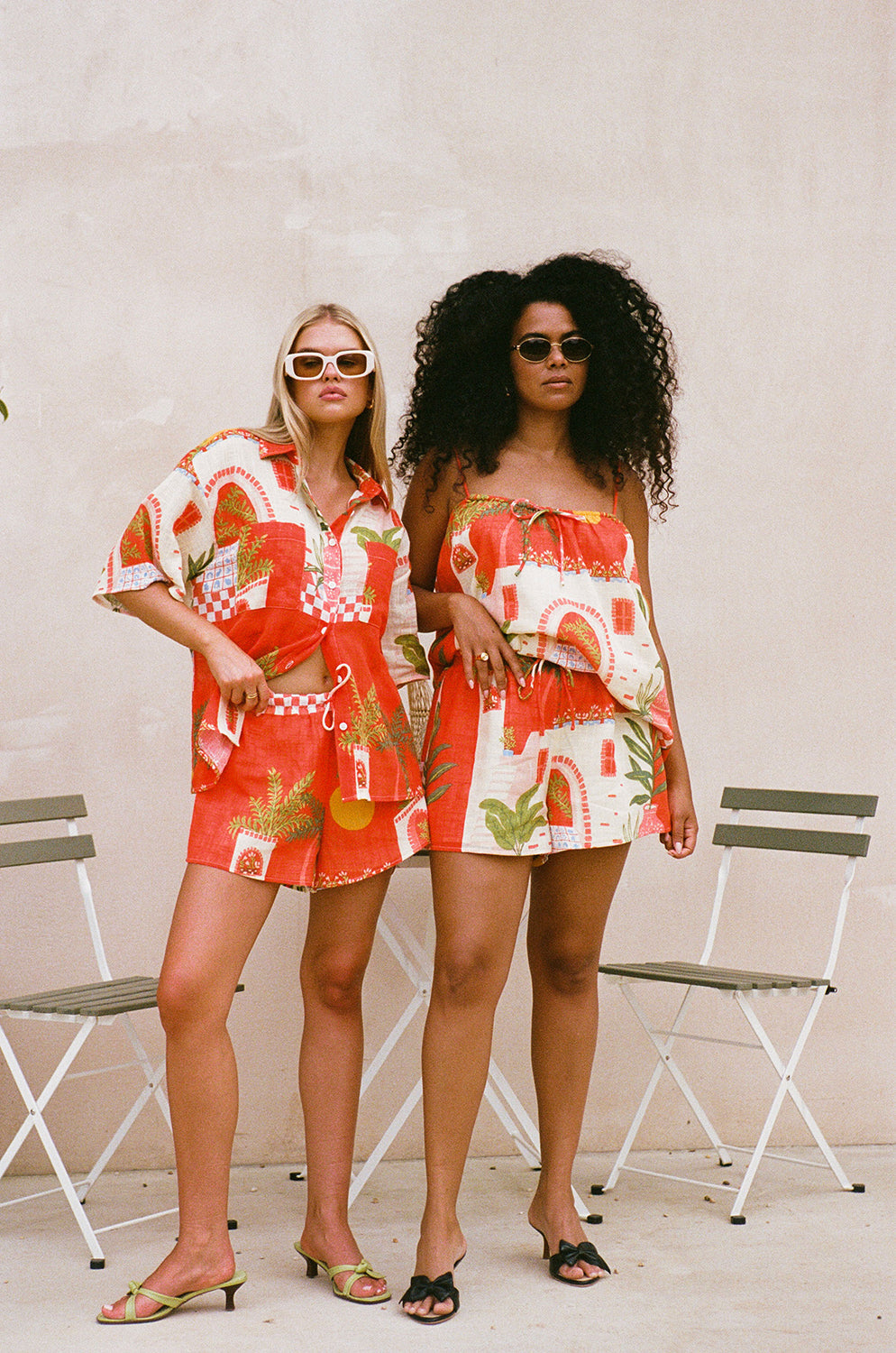 The perfect vacay piece has arrived! The Amira Top is made from a natural cheesecloth cotton fabric in our exclusive vista red print. It is a relaxed collared style featuring 1/2 length sleeves and buttons down centre. Keep the top open, pair with the Jetta Shorts and throw over your bikinis! Designed exclusively by Sabo.