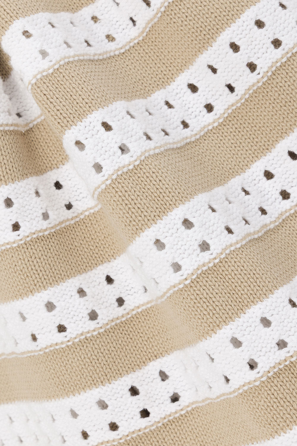 Obsessing over our new natural cotton knit! The Aston Skirt is a mid waist style featuring an elasticated waist, contrast tan and white openwork crochet and solid knit stripes, scalloped hem and a-line maxi. Get the set with the Aston Top. Designed exclusively by Sabo.