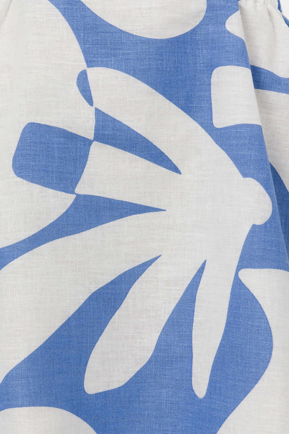 Inspired by summers in Greece, the Avaleigh Dress is made from a high quality structured cotton linen blend fabric with our exclusive Sabo shapes print. It features an open back with cross over tie details, elasticated trims, cutouts at waist and a flirty mini skirt. Style with white chunky sandals for the perfect vacation look! Designed exclusively by Sabo.