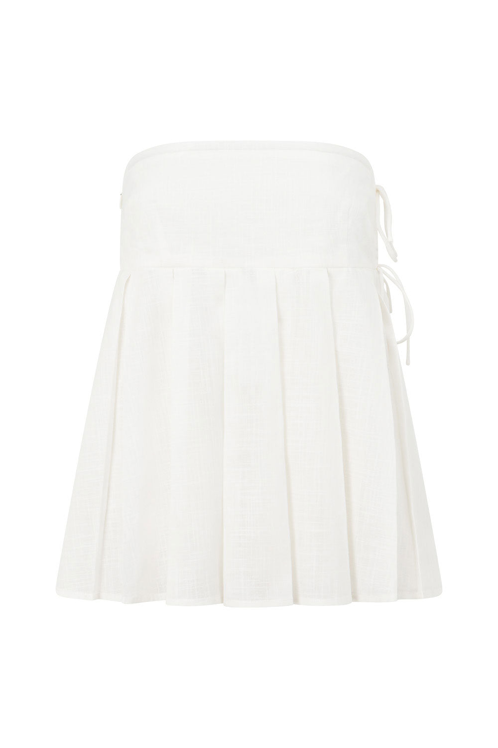 Style it with a mini skirt or pair it back with jeans, the Avenue Top is made from a high quality cotton slub fabric in white. It features a strapless neckline, fitted bust, rouleau ties at sides and babydoll pleated body. Also perfect for a growing bump! Designed exclusively by Sabo.