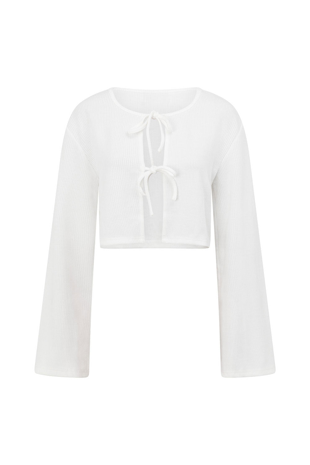 Wear it as a set or pair it with your favourite denim bottoms, the Ayla Top is made from a soft ribbed fabric in white. It is a relaxed fit and features full length flared sleeves, high neckline, split at centre front and dramatic twin tie details. Get the look with the Ayla Skirt and Zita Strappy Heels! Designed exclusively by Sabo.