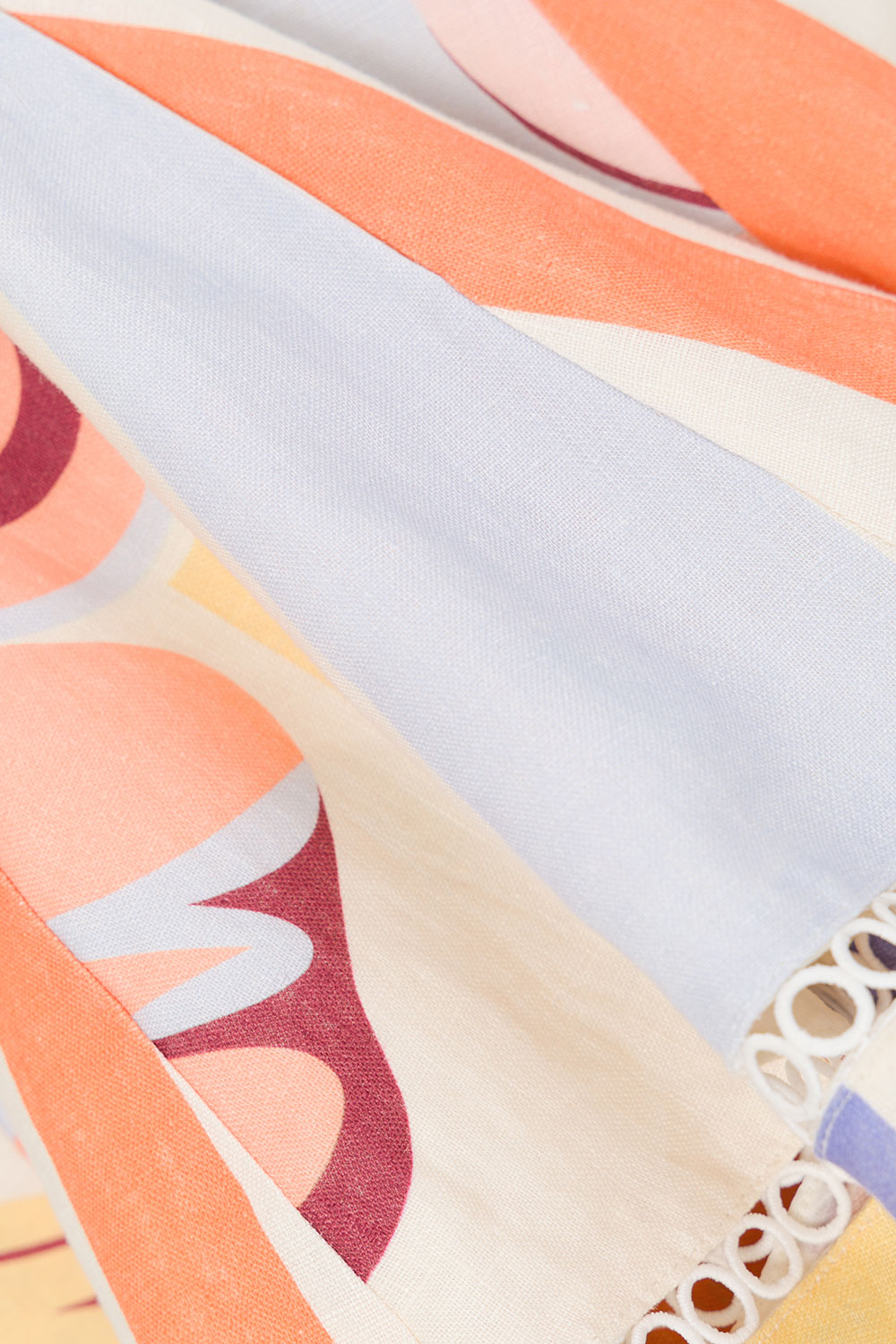The Camille Dress in our exclusive Estivo Dusk print from our Resort '25 collection. Made from a premium natural linen, it features thick adjustable straps, structured cups with underwire, lace up and loop details on bodice, decorative covered button and loops at centre front, twin pockets, flouncy mini skirt and loop trim panels across hem. Exclusive ZĀCO design.