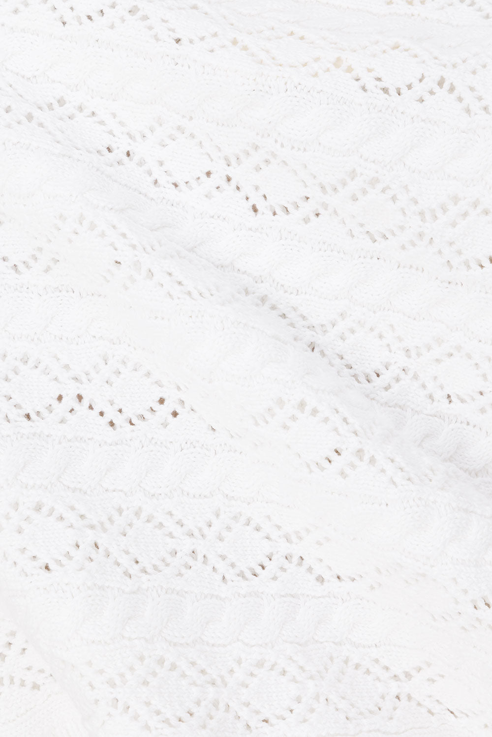 A comfy, chic trans seasonal set, the Cierra Top is made from a natural cotton crochet knit in white. It feature full length off shoulder sleeves and a relaxed boxy fit. Get the set and style with the Cierra Pants and Asuka Platform Sandals! Designed exclusively by Sabo.