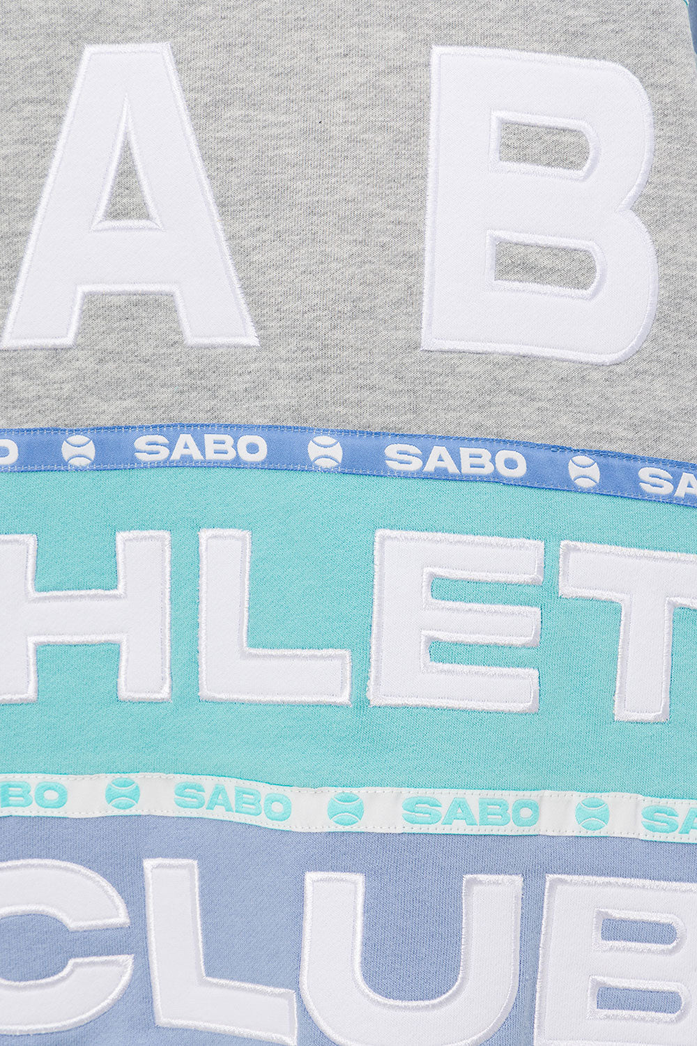 The vintage inspired Columbus Sweater is made from a natural terry back cotton sweater fabric in marl grey, blue and aqua hues. It is an oversized style featuring a collar with zipper at front neckline, extra long full length sleeves, ribbed hem and cuffs and embroidery, tape and patch details throughout. Pair with bike shorts! Designed exclusively by Sabo.