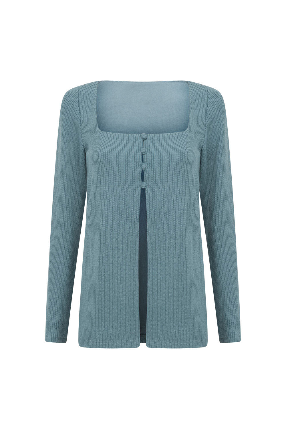 Wear it as a set or pair it back with jeans! The Daria Top is made from a ribbed fabric in a dusty blue hue. It is a relaxed style featuring full length sleeves, square neckline, split at centre front and covered buttons at bust. Get the set and pair with the Daria Top! Designed exclusively by Sabo.