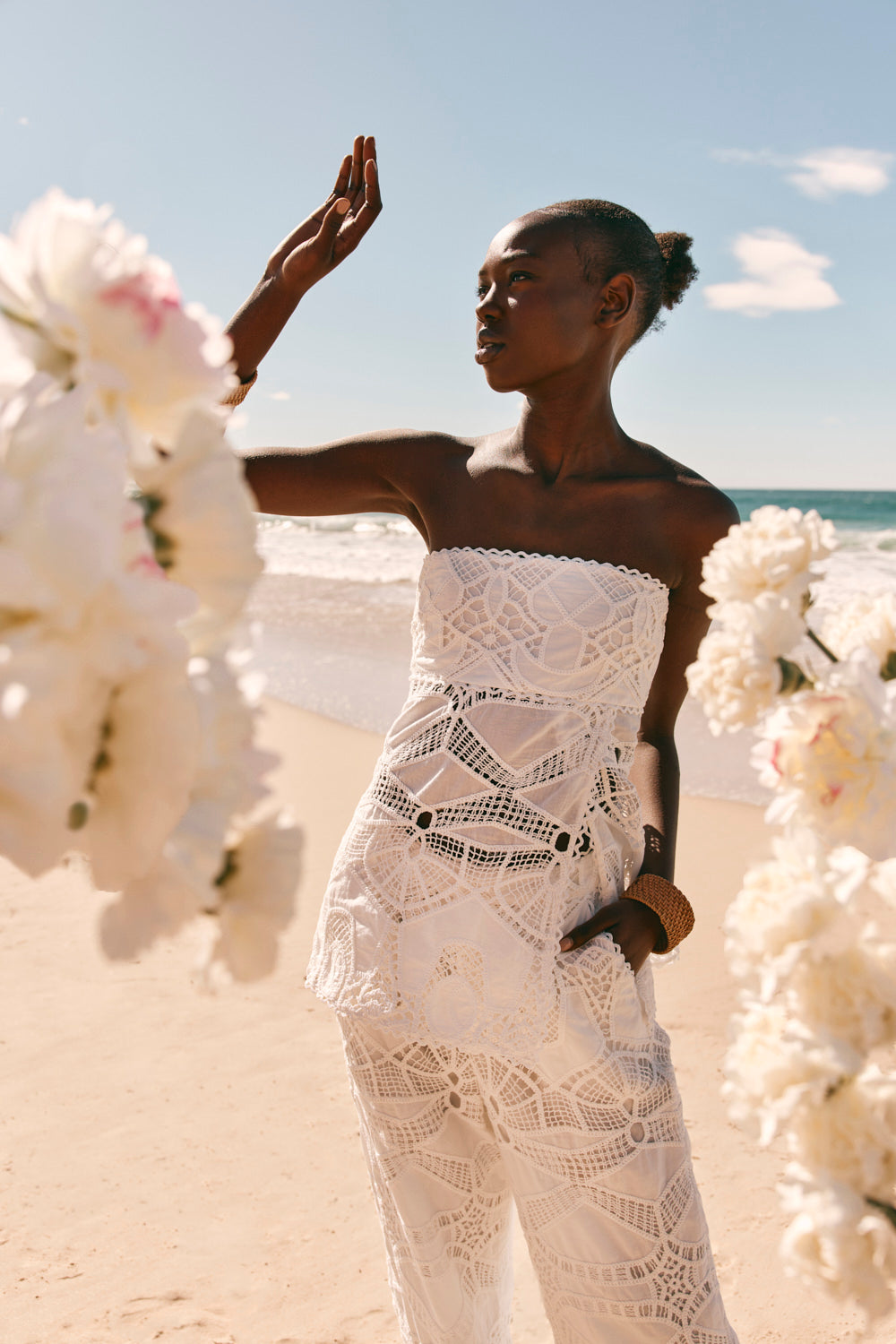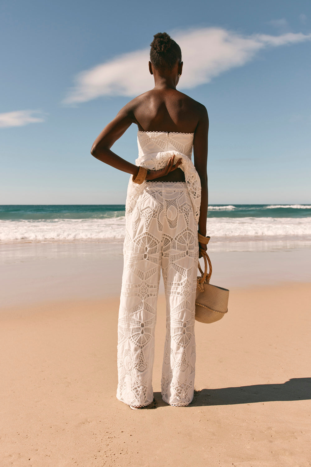 The Donna Pants in our delicate cutwork embroidered fabric from our Resort '25 collection. A cotton pant with a high waist, loop trim detailing, twin pockets and a wide fit. Pair with the Donna Top. Exclusive ZĀCO design.