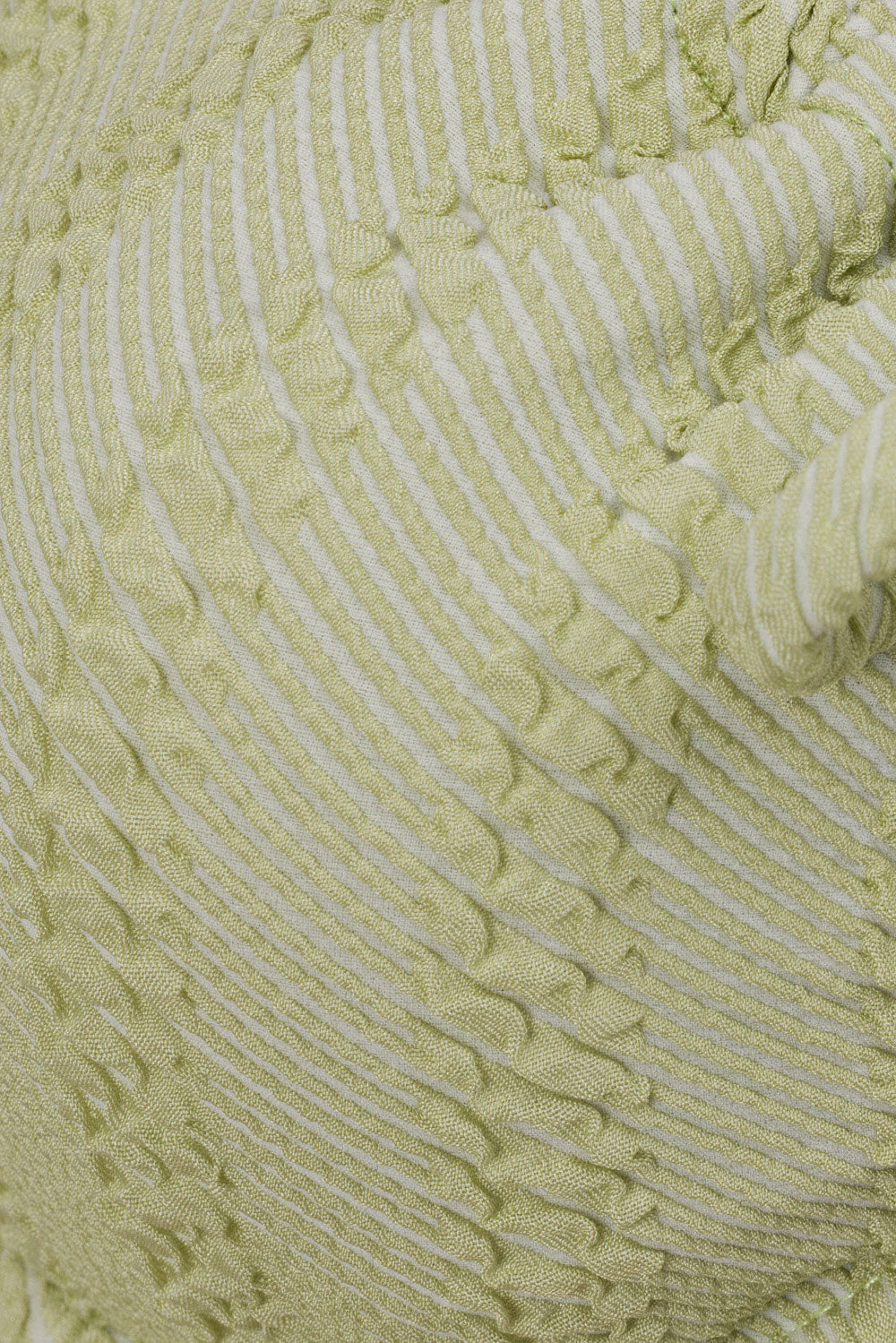 Inspired by sun drenched summers, the East Coast Tie Bottom is made from a high quality stretchy bubble fabric with self stripes in a soft green hue. It is a micro style featuring ties at sides. Get the set with the East Coast or Cruiser Top! Designed exclusively by Sabo.