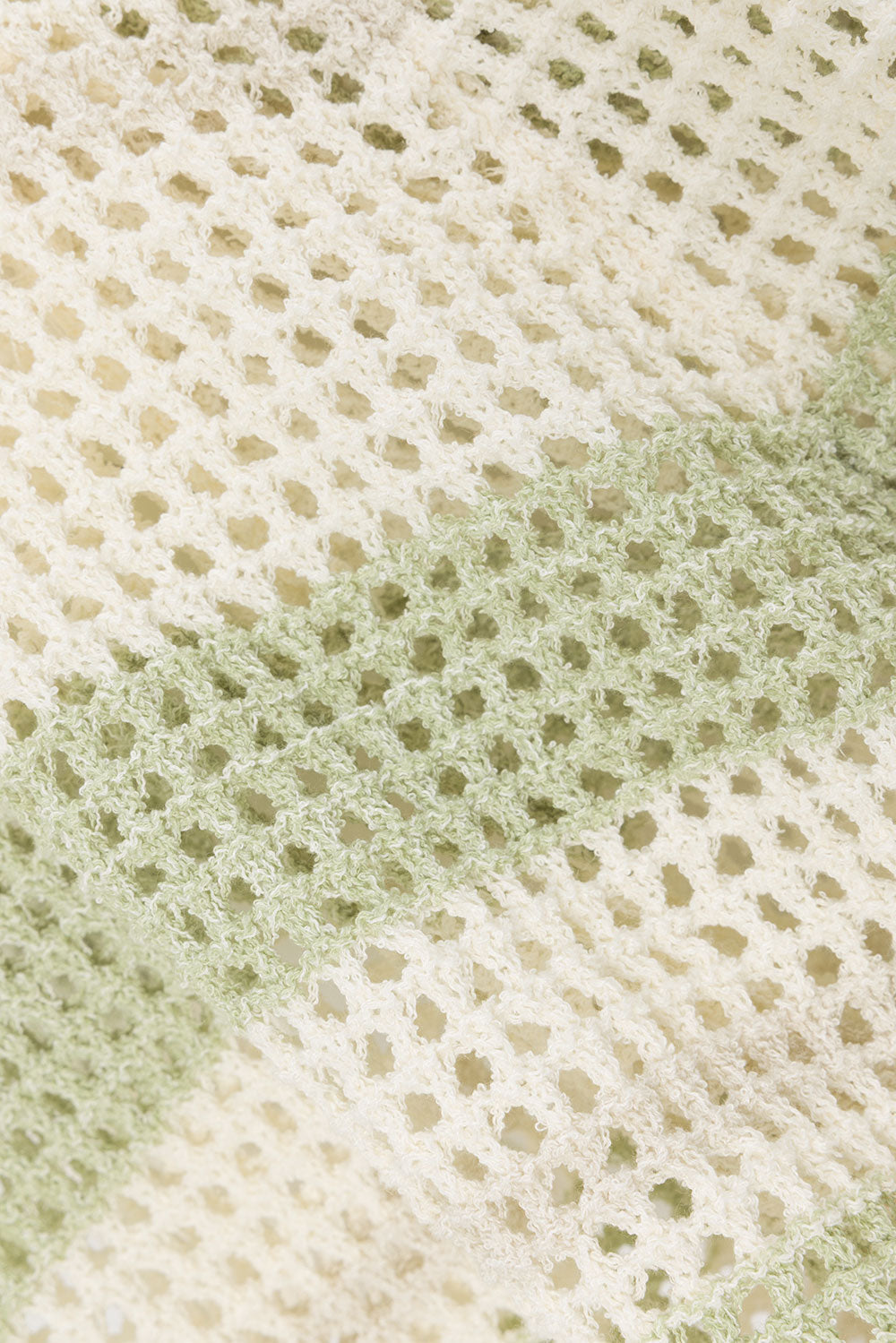 Throw it over your bikinis to take you from beach to bar! The Easton Playsuit is made from a crochet knit in mint, cream and grey hues. It features a rounded neckline with button opening, drop shoulders and boxy short sleeves, ribbed trims and matching waist tie. Style with the Deka Sandals! Designed exclusively by Sabo.