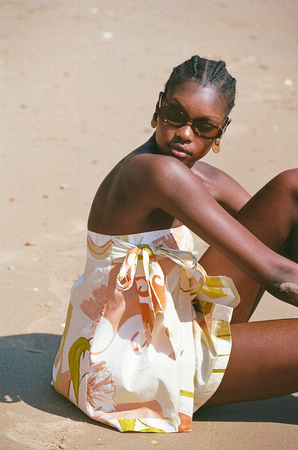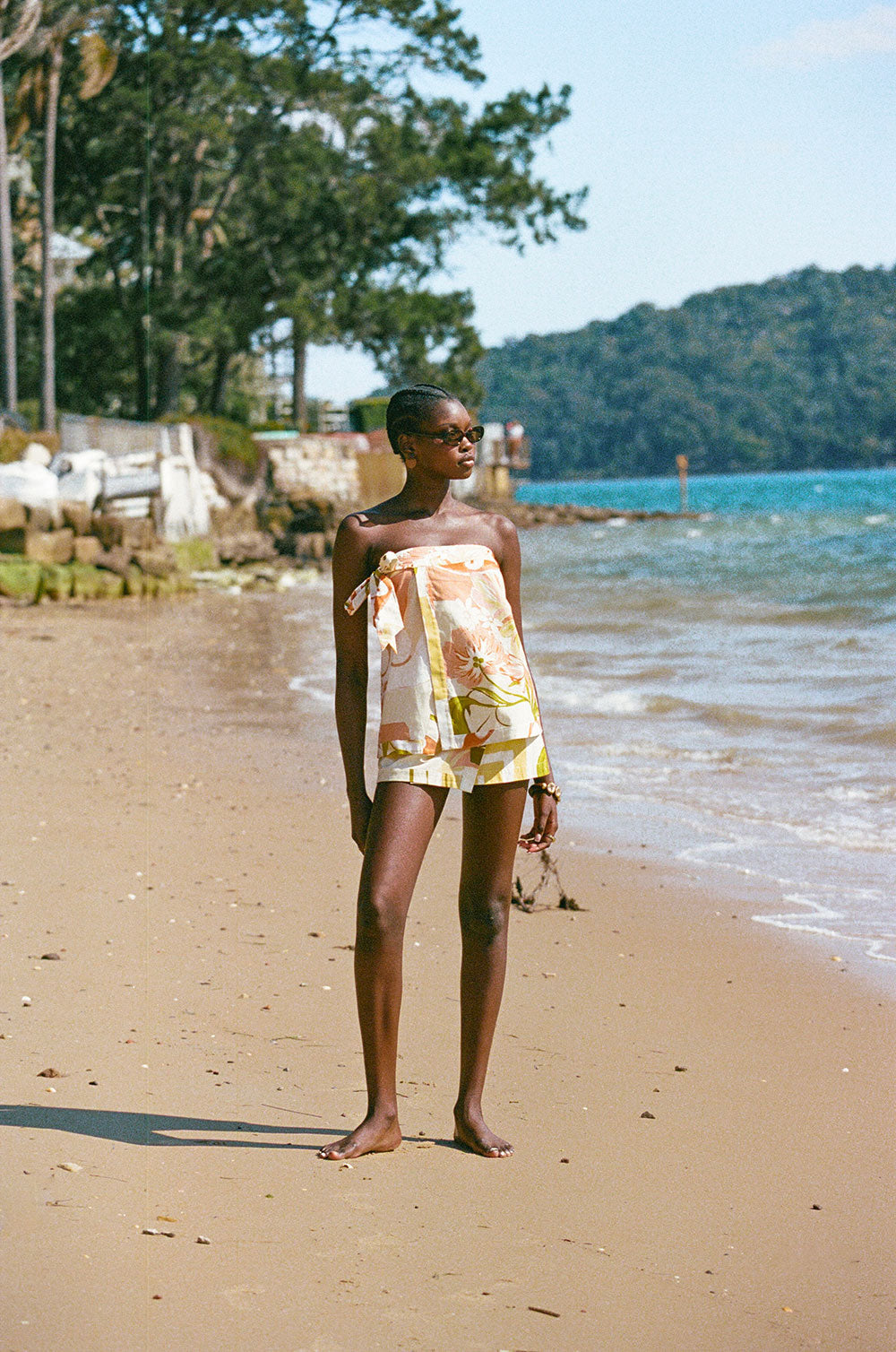 From our Summer Story collection, the Elexus Top is made from a high quality natural linen cotton blend fabric with our exclusive Thalassa Rust print. It features a strapless neckline, wrap panel at front with tie at side and longline hem. Get the set with the Elexus Skirt! Designed exclusively by Sabo.