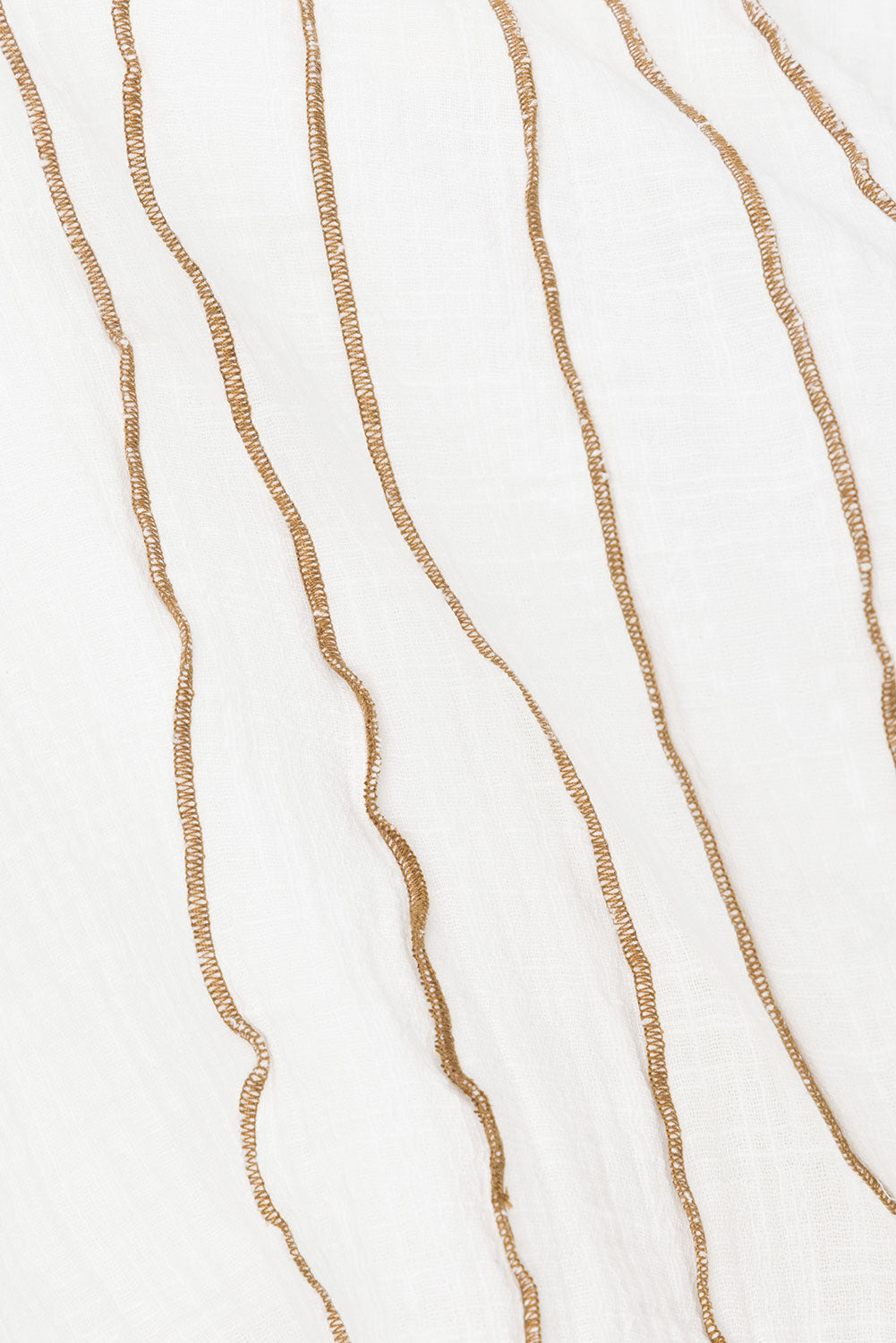 Inspired by feminine curves, designed to flatter. The Emilia Top is made from a natural cotton fabric in white. It features a fitted strapless neckline, flouncy a-line hem and contrast tan contour and trim panels throughout. Get the set Emilia Pants. Designed exclusively by Sabo.