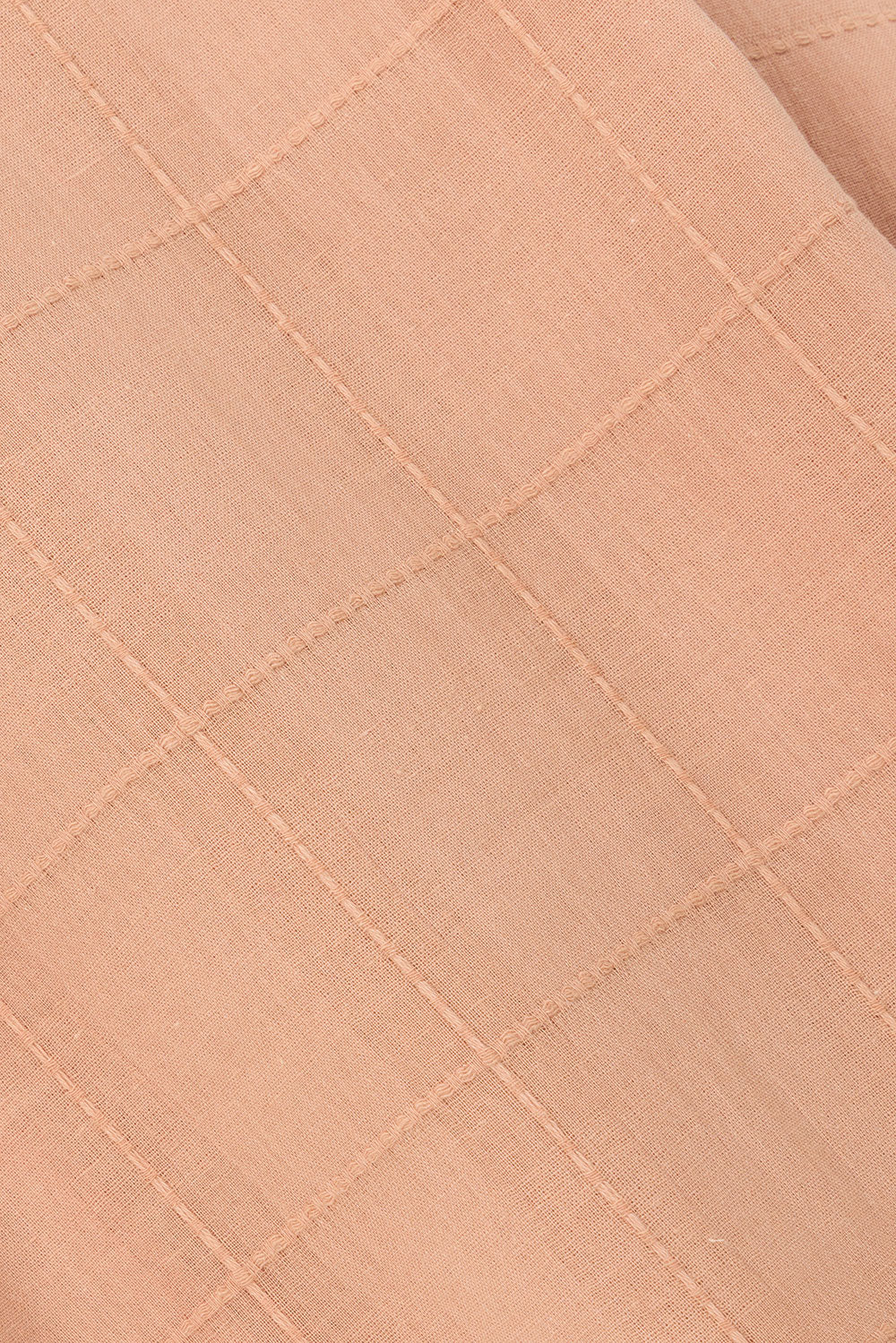 The vacation inspired Emmie Pants are made from a natural self check cotton fabric in a dusty rust hue. They are a high waisted style featuring a paper bag waist with loop and rope tie detail and long wide leg pants. Get the set with the Emmie Top and style with the tan Kia Sandals! Designed exclusively by Sabo.