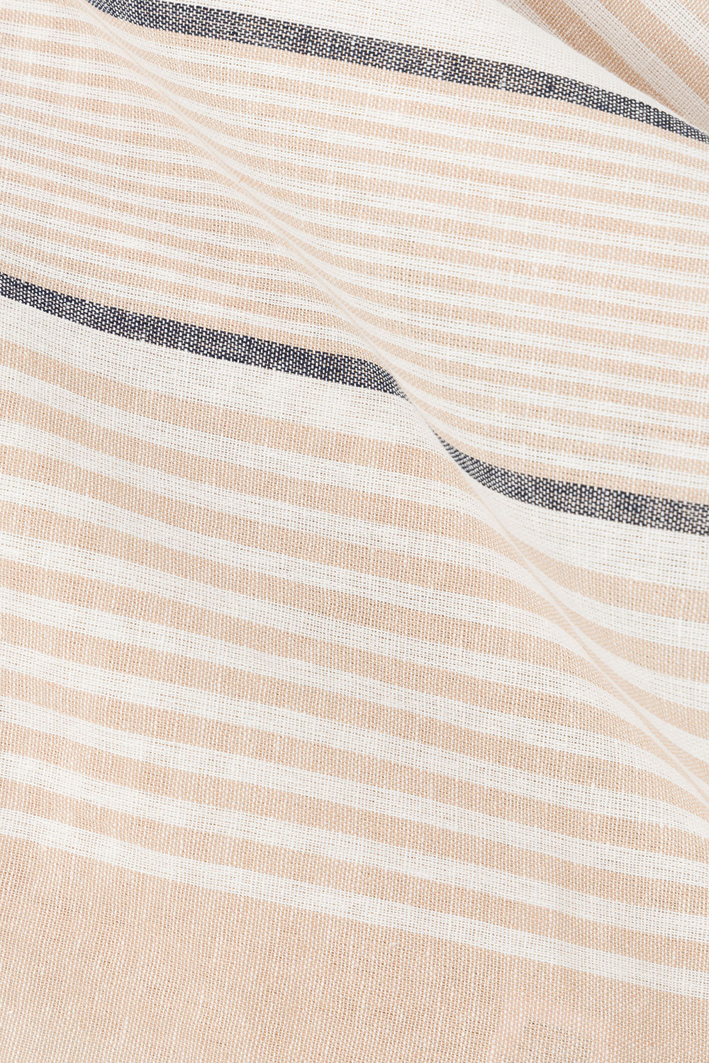 The perfect basic set. the Enza Top is made from a high quality natural linen cotton blend fabric in beige, white and charcoal stripes. It is a relaxed style with collar and low lapel, buttons at centre front, drop shoulders with boxy sleeves and single breast pocket. Get the set with the Enza Shorts! Designed exclusively by Sabo.