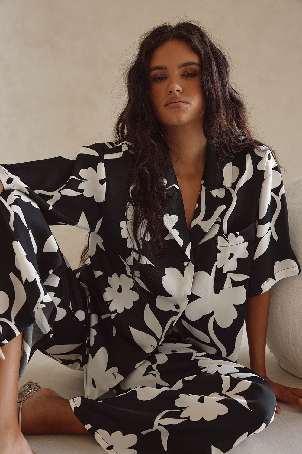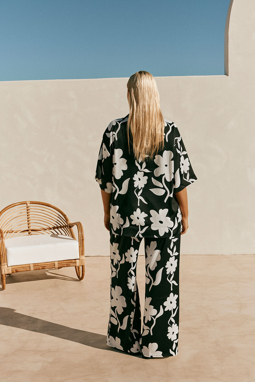 A chic, easy-to-wear set! The Enza Top is made from a luxurious fabric with our exclusive Alma Caroline print. It is a relaxed style with collar and low lapel, buttons at centre front, drop shoulders with boxy sleeves and single breast pocket. Get the set with the Enza Pants! Designed exclusively by Sabo.