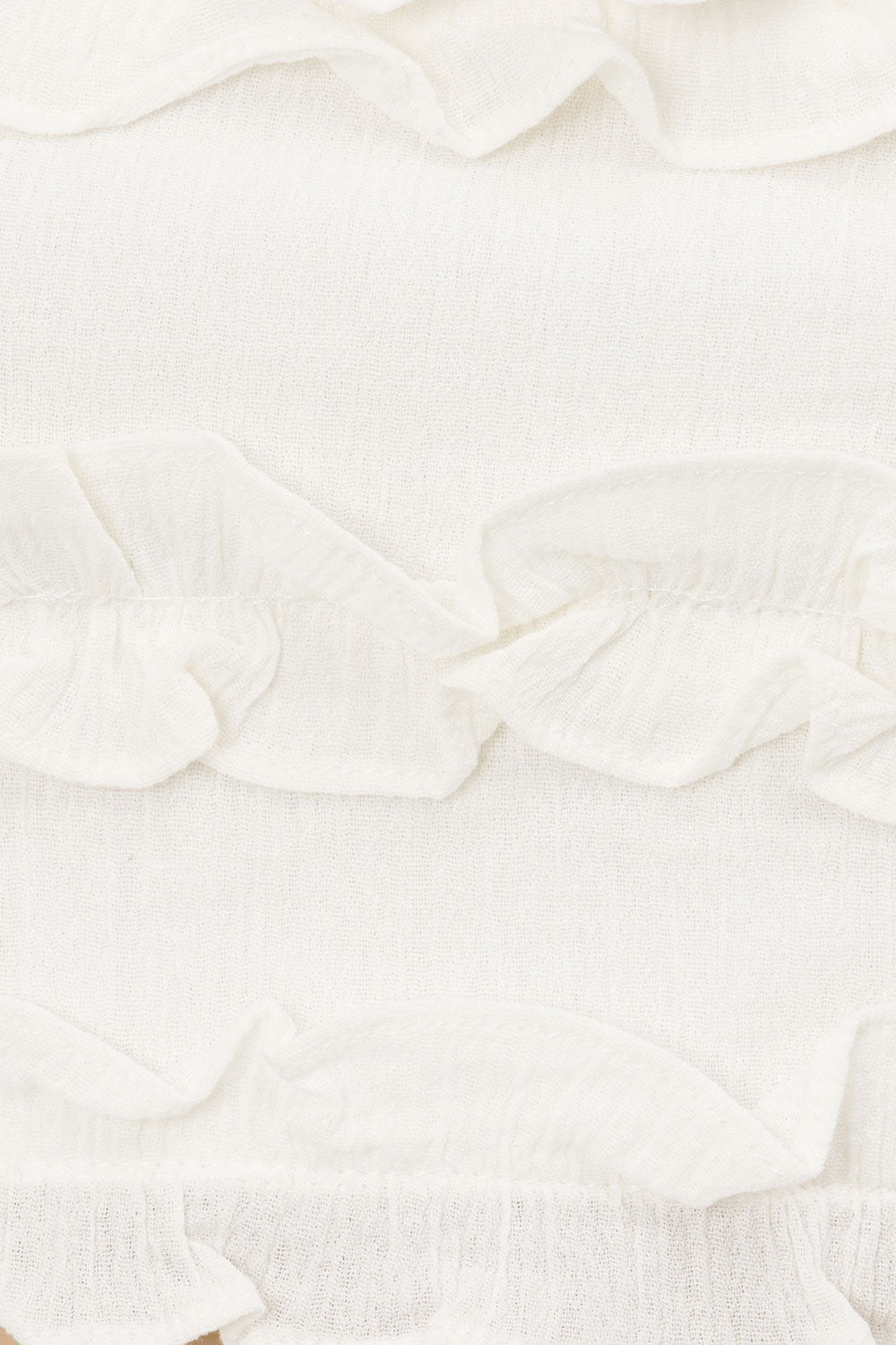 Wear it as a set or style it back with jeans! The Huntah Top is made from a natural crinkle cotton fabric in an off white hue. It features thin rouleau straps, frill panel details and a cropped hem. Get the look with the Huntah Draw Skirt! Designed exclusively by Sabo.
