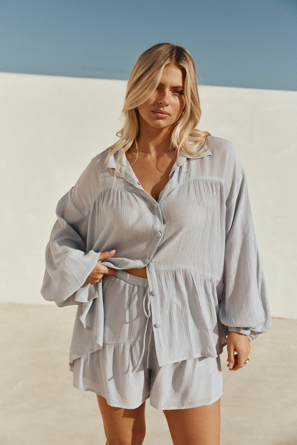 With the Sabo signature essence, the Huxley Shorts are your next go-to staple! They are made from a lightweight rayon blend crepe fabric in a soft blue hue and feature a high elasticated waist with drawstring and flouncy tiered fit. Get the look with the Huxley Top! Designed exclusively by Sabo.