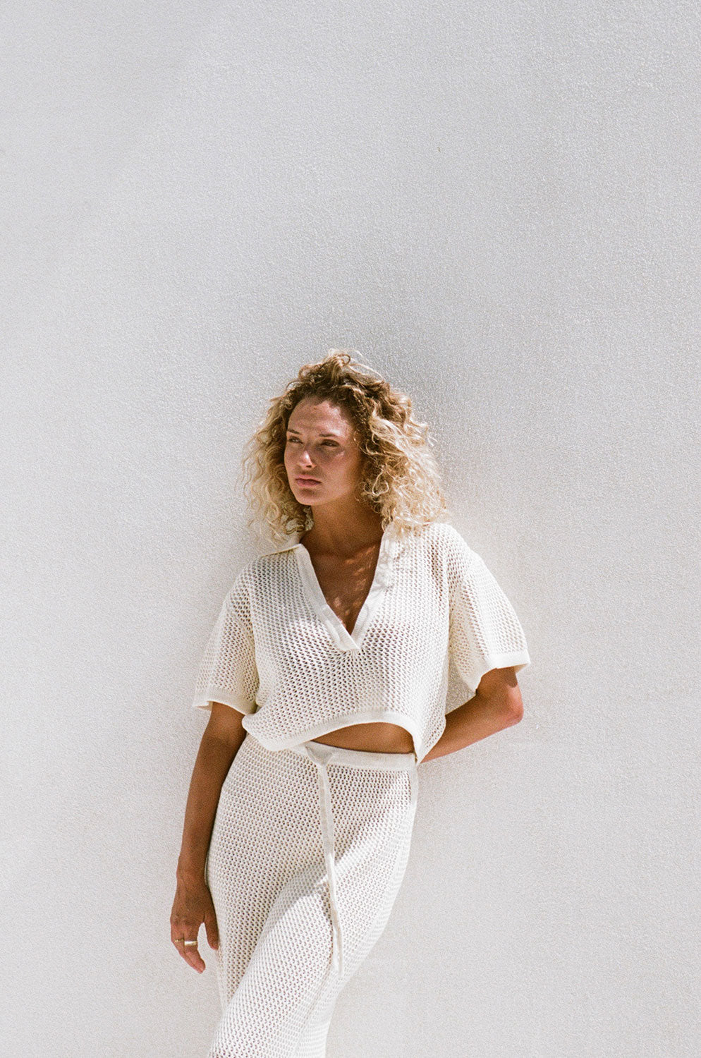 Wear it as a set or style it back for your vacation wardrobe! The Ivy Top is made from a sheer cotton mesh with contrast ribbed collar and trims. Get the set with the Ivy Skirt! Designed exclusively by Sabo.