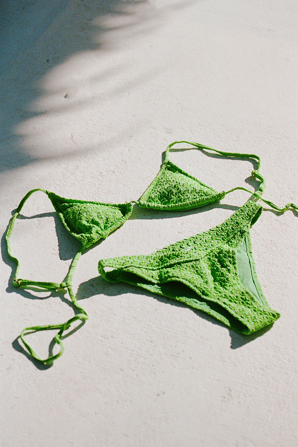 Obsessed with our new high quality square jacquard fabric in a bold green hue, the Joni Tri Top features adjustable straps, micro tri cups with removable padding and tie strap at back. Pair with the Joni Bottom or Archie Tie Bottom! Designed exclusively by Sabo.