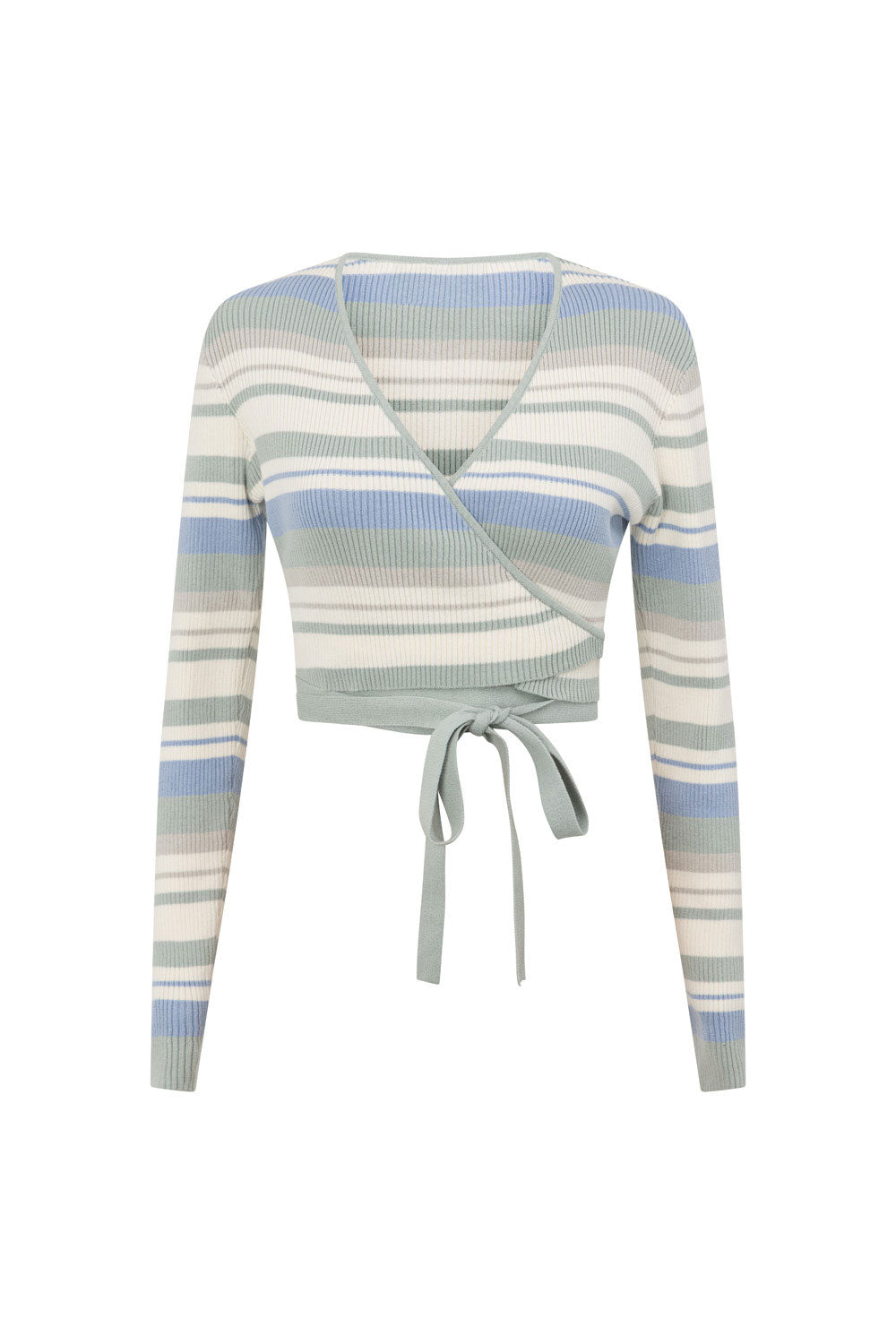 The perfect set as the weather cools down, the Kaila Top is made from a natural cotton knit fabric with blue, dusty sage and white stripes. It is a wrap style featuring full length sleeves. Get the set with the Kaila Skirt and pair with boots! Designed exclusively by Sabo.