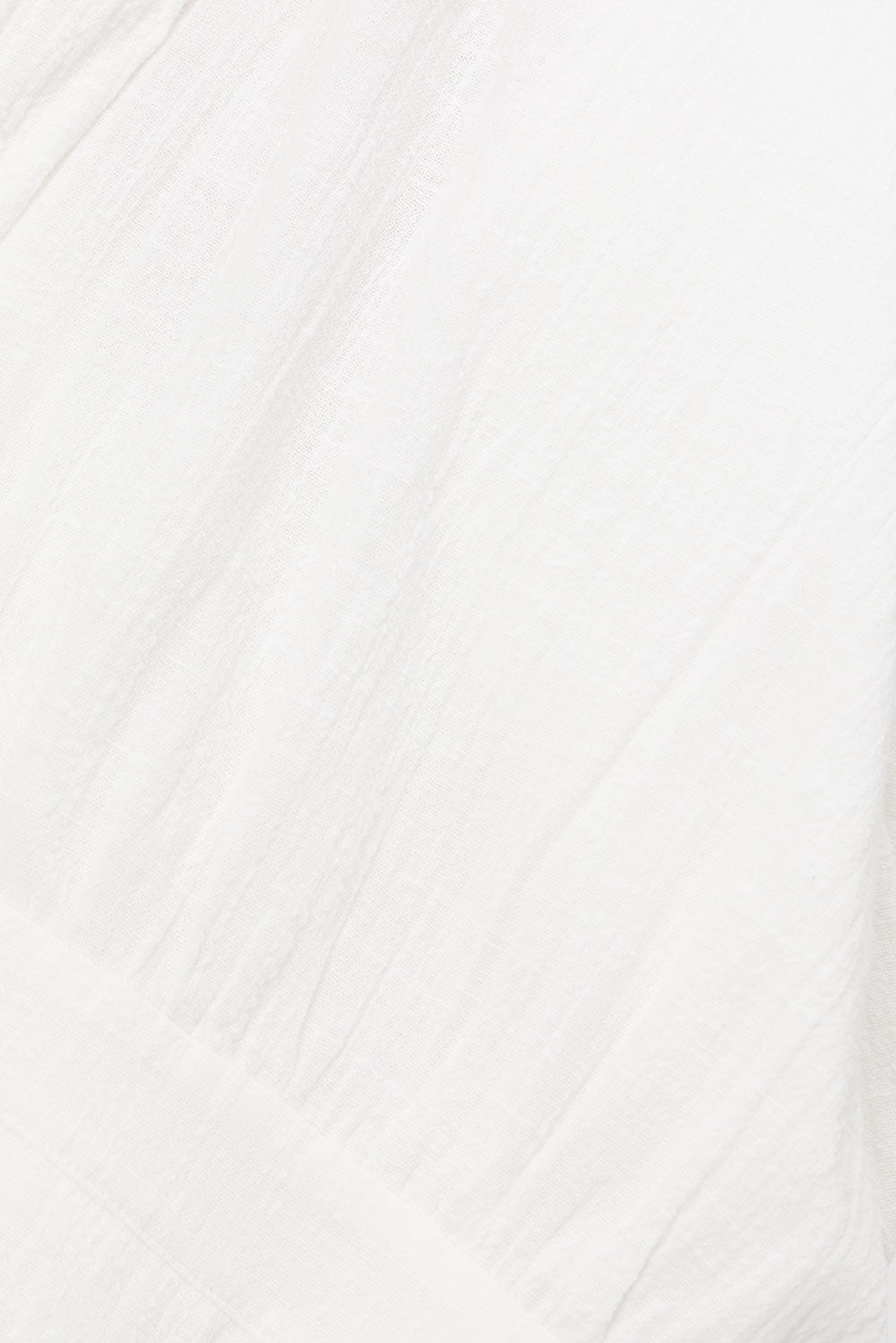 A must-have vacation wardrobe piece, the resort-vibe Kailey Dress is made from a raw natural cotton fabric in white. It features draw tie details at shoulders, cross-over V neckline with a relaxed bodice blousing over a high waisted wrap skirt with tie at side. Pair with the Lovelock Necklace and slides for an effortlessly cute look! Designed exclusively by Sabo.