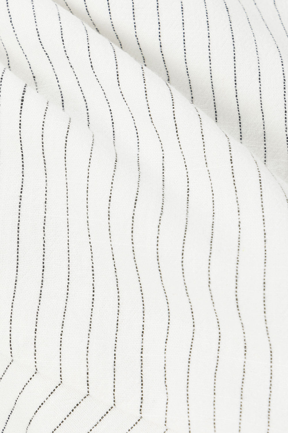 A super cute set and styling piece, the Kenny Skirt is made from a luxurious rayon linen blend fabric with black pinstripe. It is a high waisted style featuring a wrap panel at front with tie closure and curved hem. Get the look with the Kenny Top! Designed exclusively by Sabo.