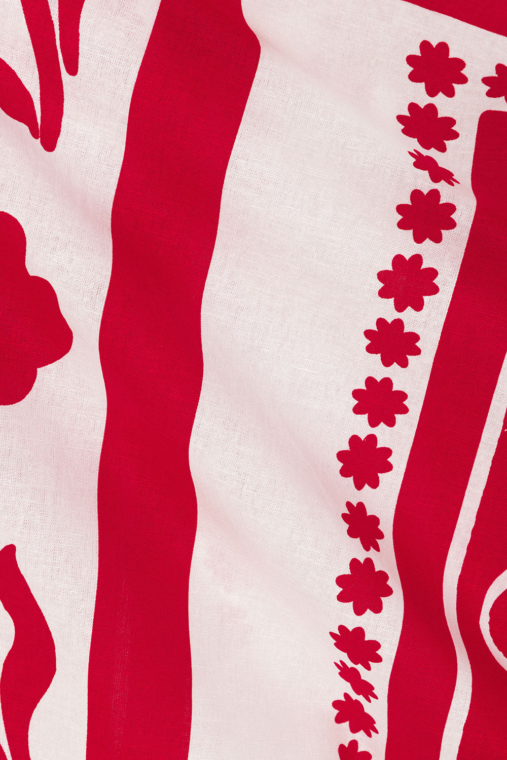 An elevated, easy-to-wear style, the Kit Dress is made from a natural linen cotton blend fabric with our exclusive Red Voyage print. It is a boxy style featuring a round neckline with drawstring tie, split at centre neck, short puff sleeves, twin pockets and flouncy mini hem. Designed exclusively by Sabo.