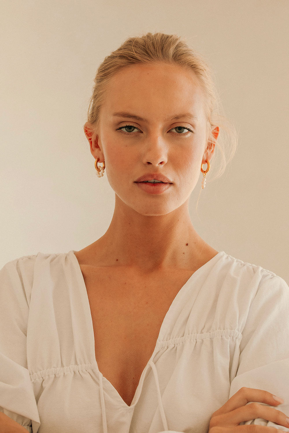 A fun way to accessorise! The Leia Huggie Earrings are gold toned and feature attached mismatched pearl details.