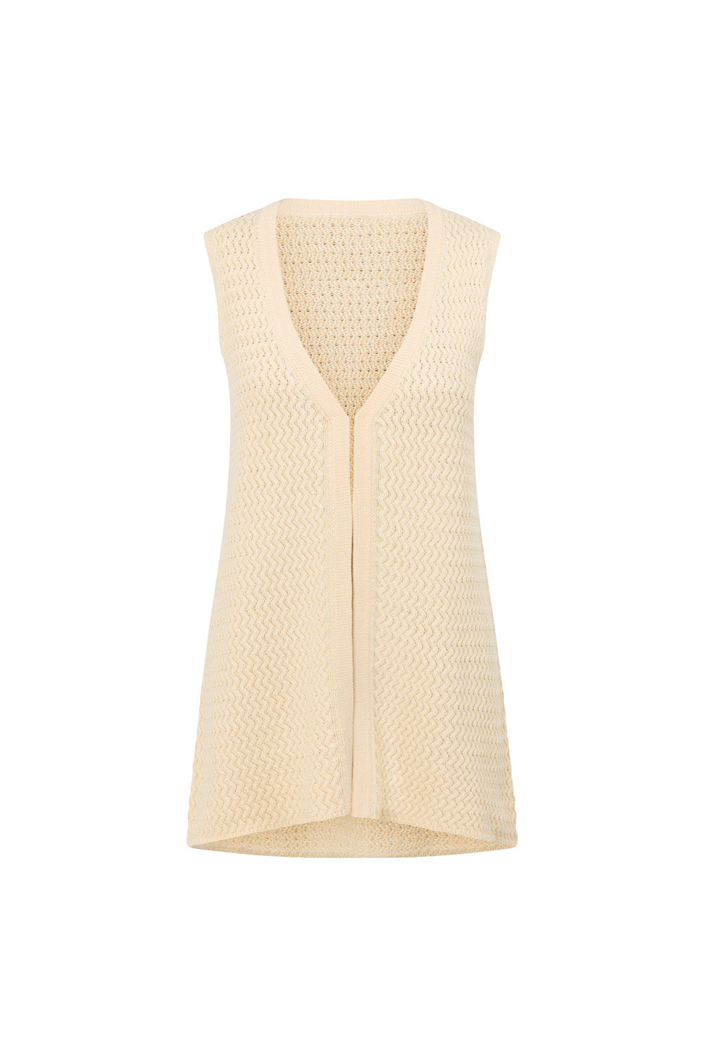The ultimate go-to and easy-to-wear set that is sure to be high on the rotation! The Mabel Top is made from a high quality cotton blend zig zag knit in a cream hue. it is a boxy vest style featuring a V neckline with hook eye closure, split detail at centre front and finished with a ribbed trim. Get the look with the Mabel Shorts. Designed exclusively by Sabo.