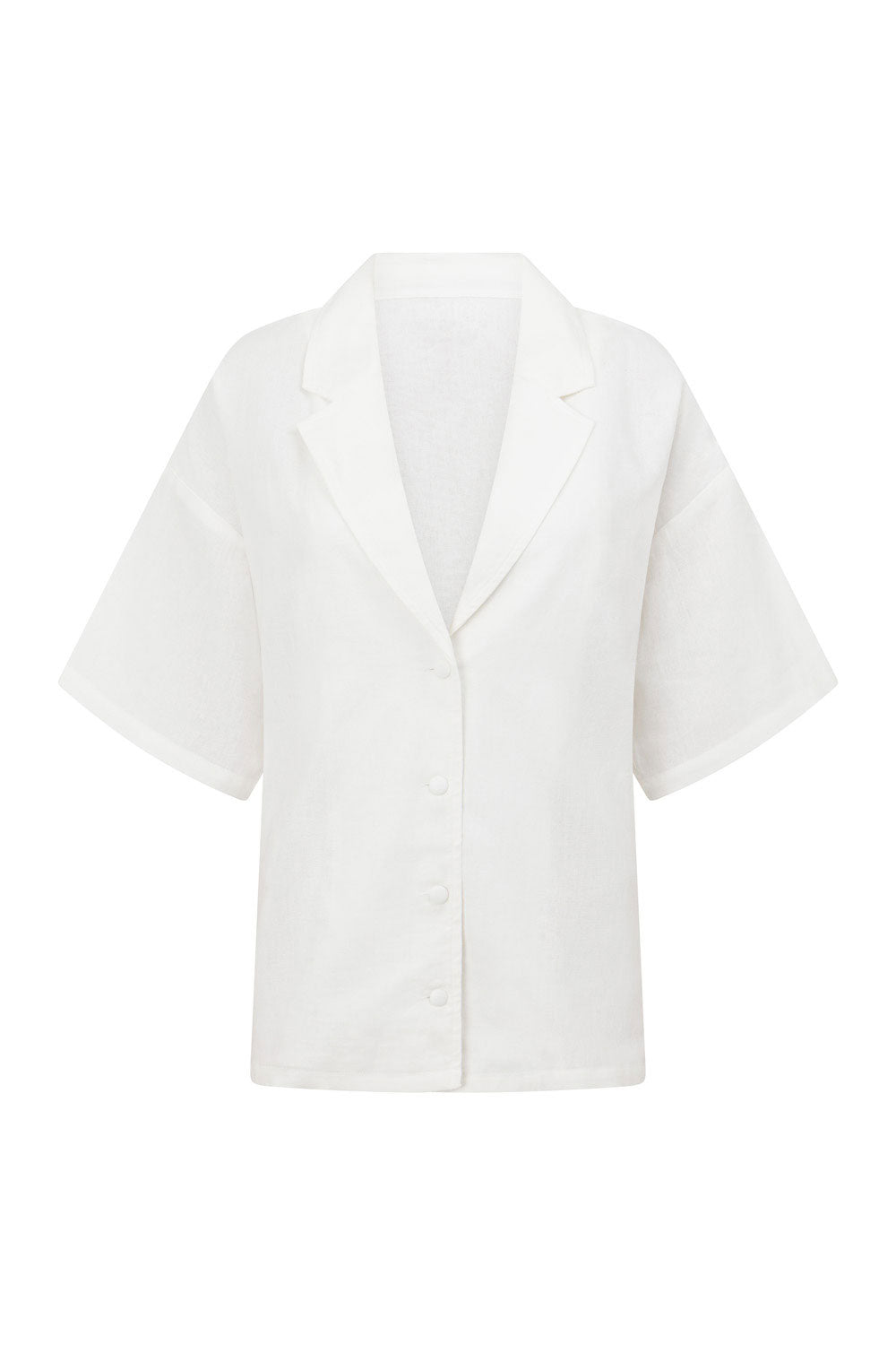 The easy-to-wear Mallory Top is made from a natural linen cotton blend fabric in white. It is a relaxed style featuring drop shoulders, 1/2 length sleeves, collar with a low lapel, covered buttons down centre front and little splits at sides. Get the look and pair with the Mallory Shorts! Designed exclusively by Sabo.