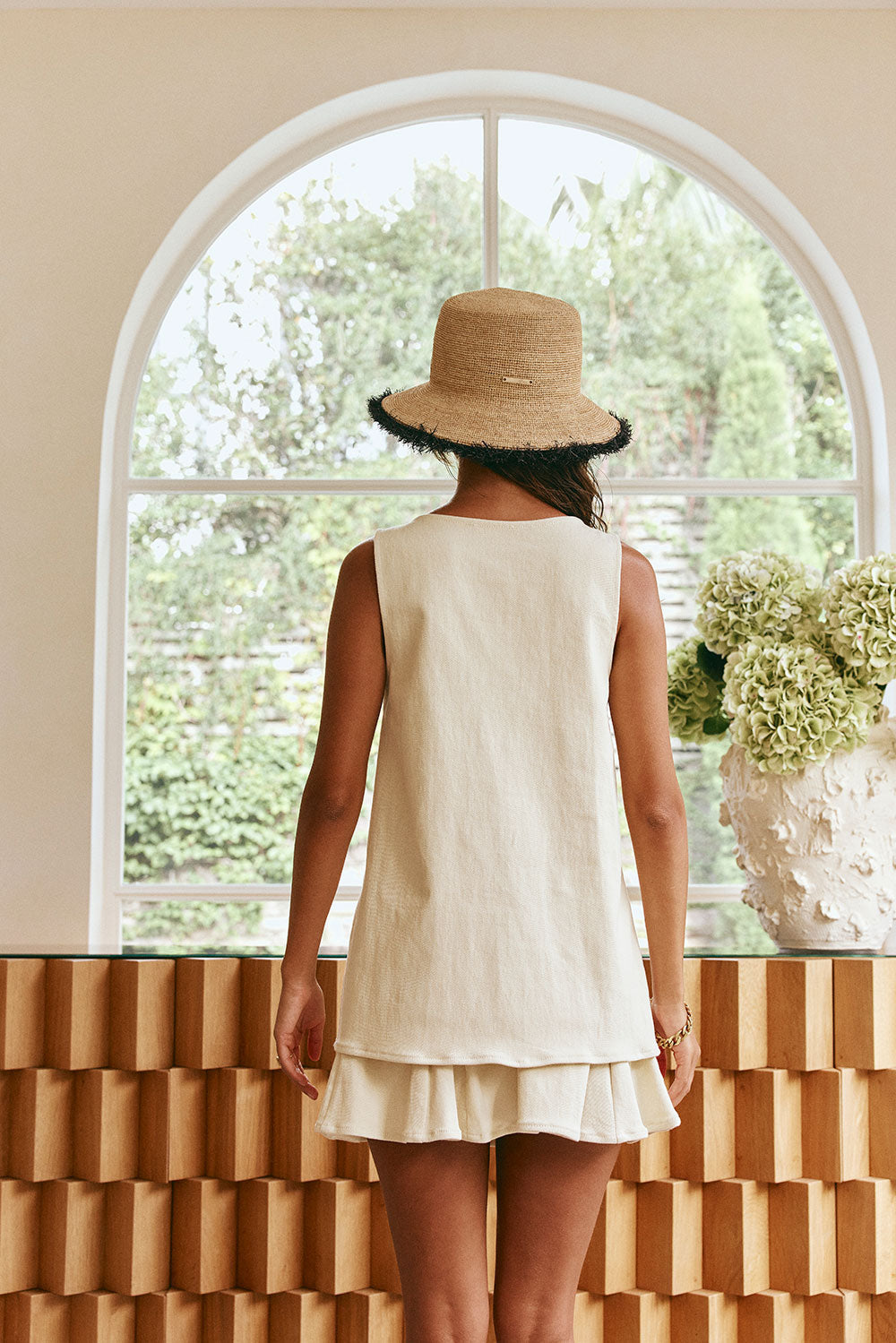 A super chic set, the Mari Top is made from a high quality cotton blend fabric in cream. It features a wide longline hem with godet details, covered button opening and wide straps. Get the set with the Mari Skirt! Designed exclusively by Sabo.