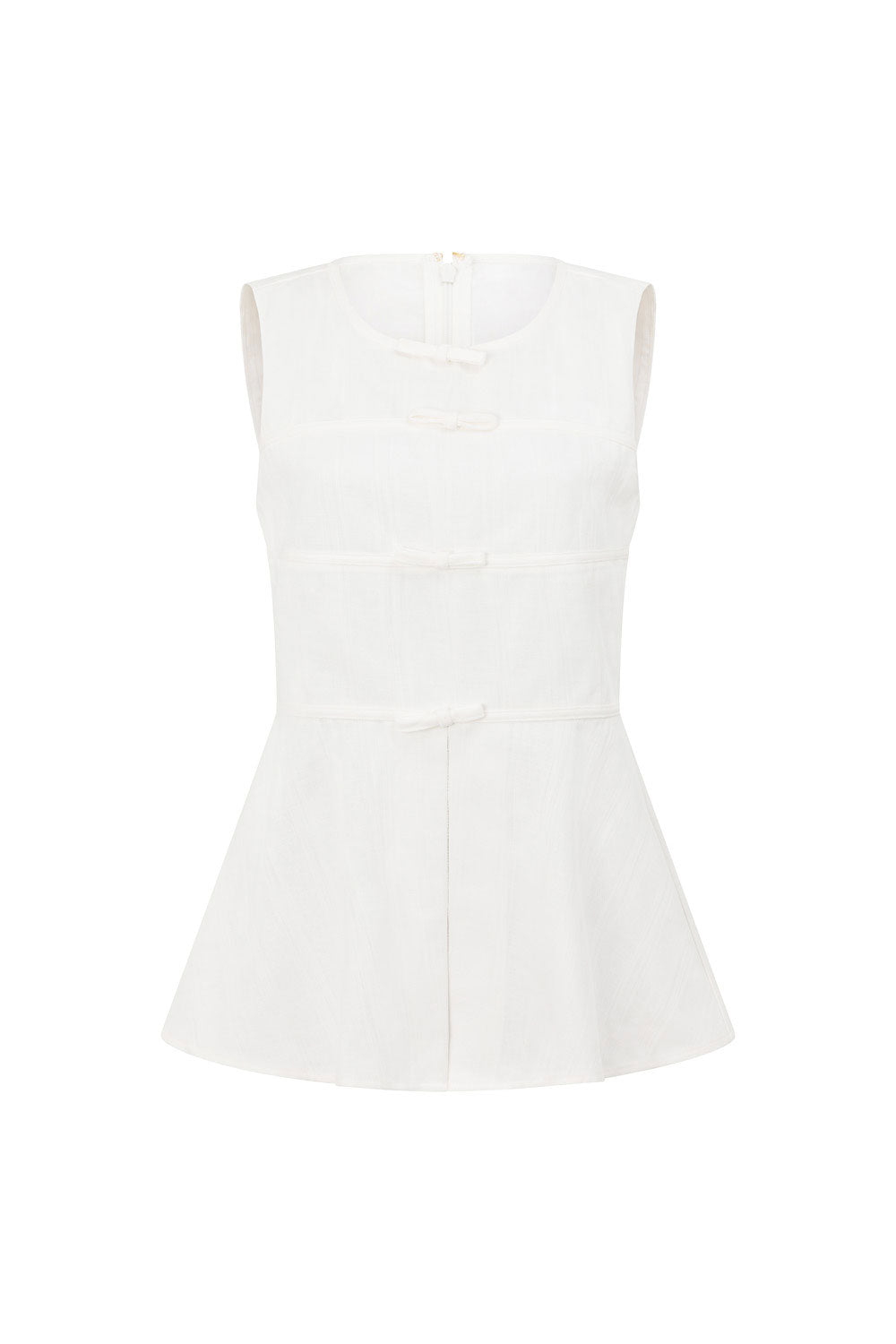 Structured and feminine, the Muse Top is made from a natural cotton fabric in white. It features a bind trim neckline, panels and bows and a longline top with flare at hem and split detail. Pair it with the Muse Shorts and mules. Designed exclusively by Sabo.
