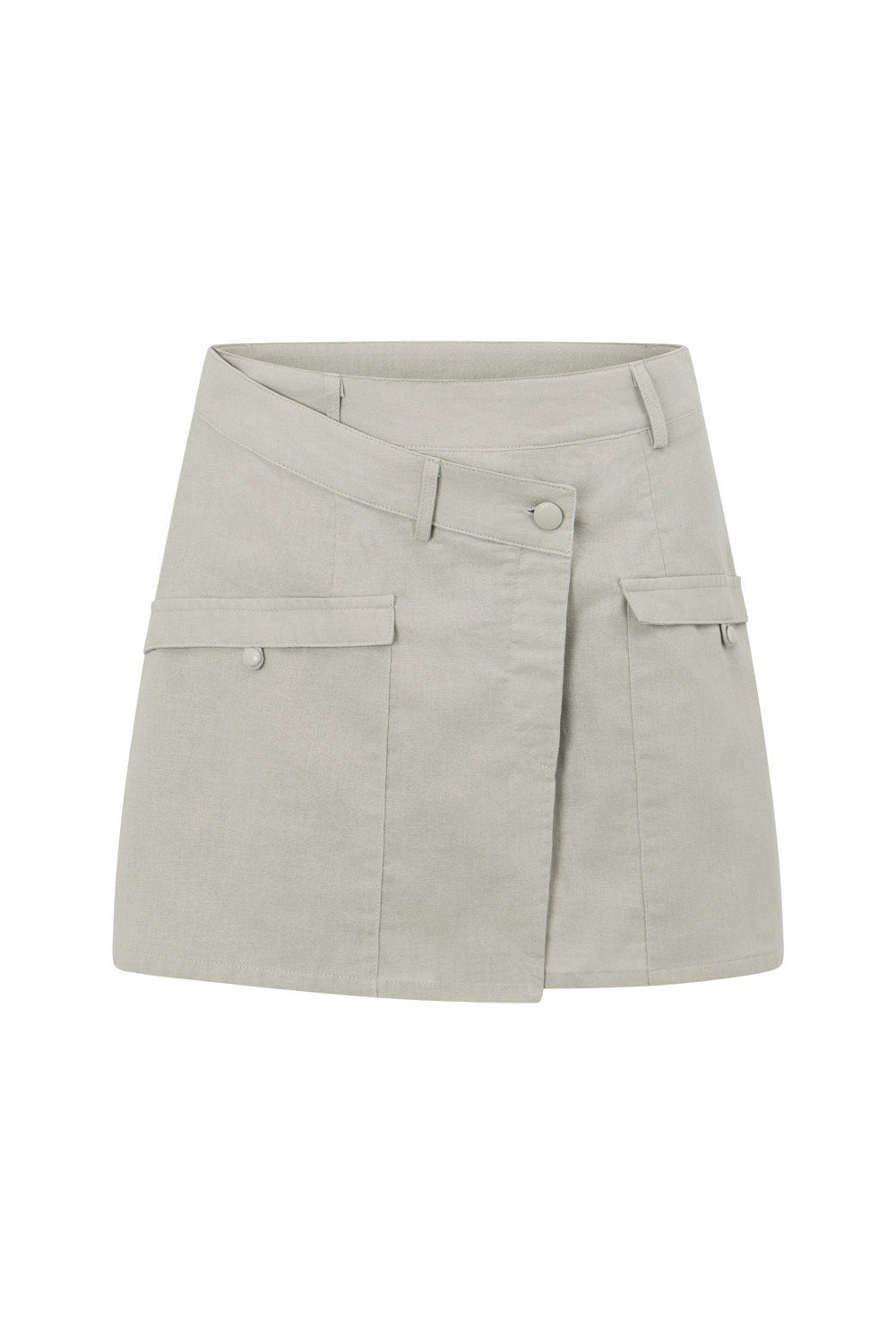 *BACK IN STOCK* Wear it as a set or style it back with a cropped tank! The Paige Skort is made from a structured cotton linen blend fabric in a sage green hue. It is a high waisted style featuring under layer shorts, an asymmetric wrap layer at front, covered button closures and twin pockets at front. Get the look with the Paige Top and style with slides! Designed exclusively by Sabo.