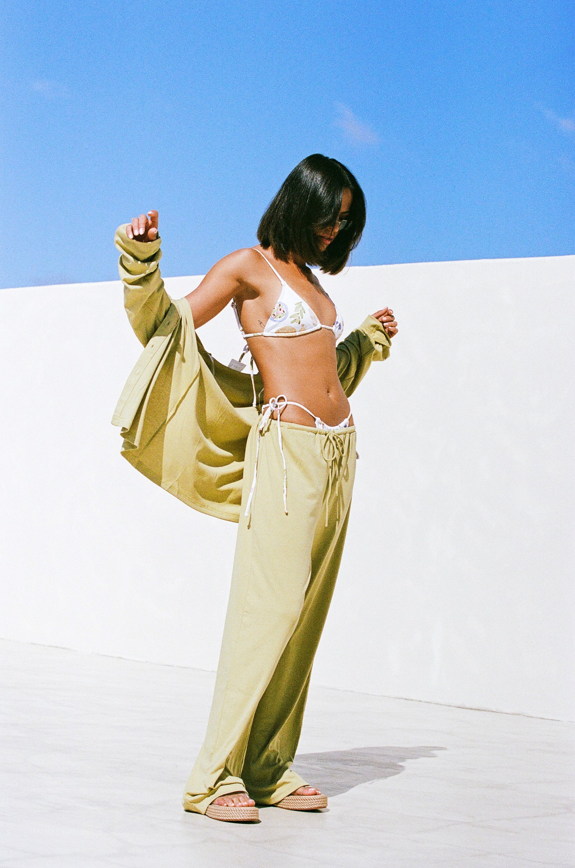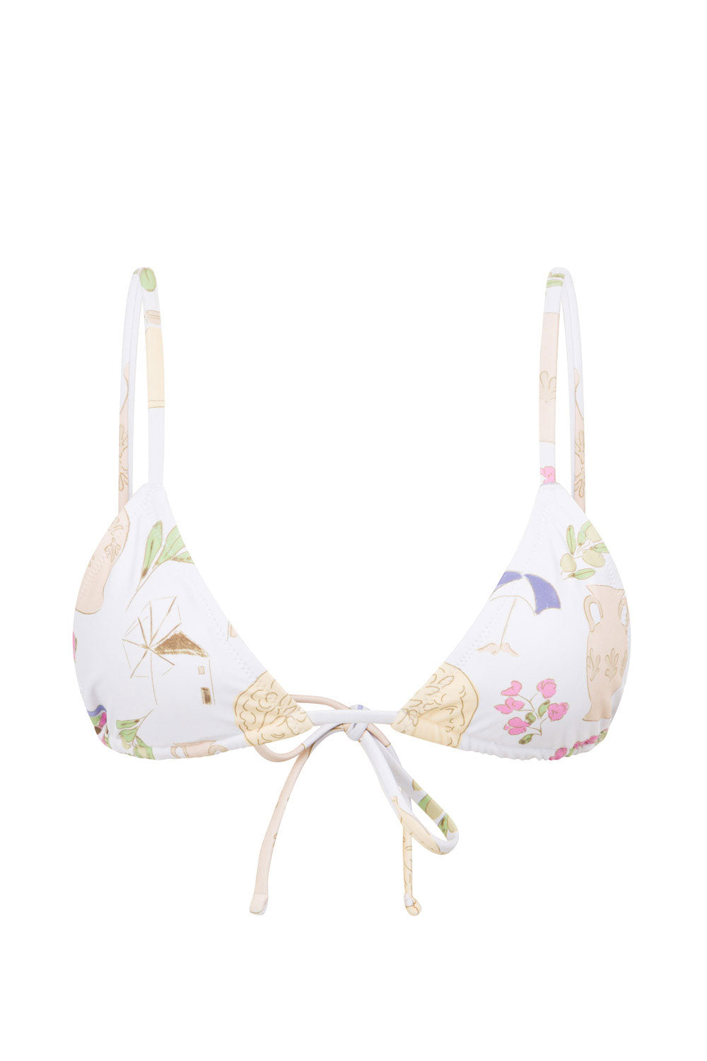 Inspired by sun drenched summers, the Rhodes Tri Top is made from a high quality stretchy swim fabric with our exclusive Greece print. It features micro tri cups, thin adjustable shoulder straps and tie at back. Get the look with the Rhodes Ruched Bottom and matching Leta set! Designed exclusively by Sabo.
