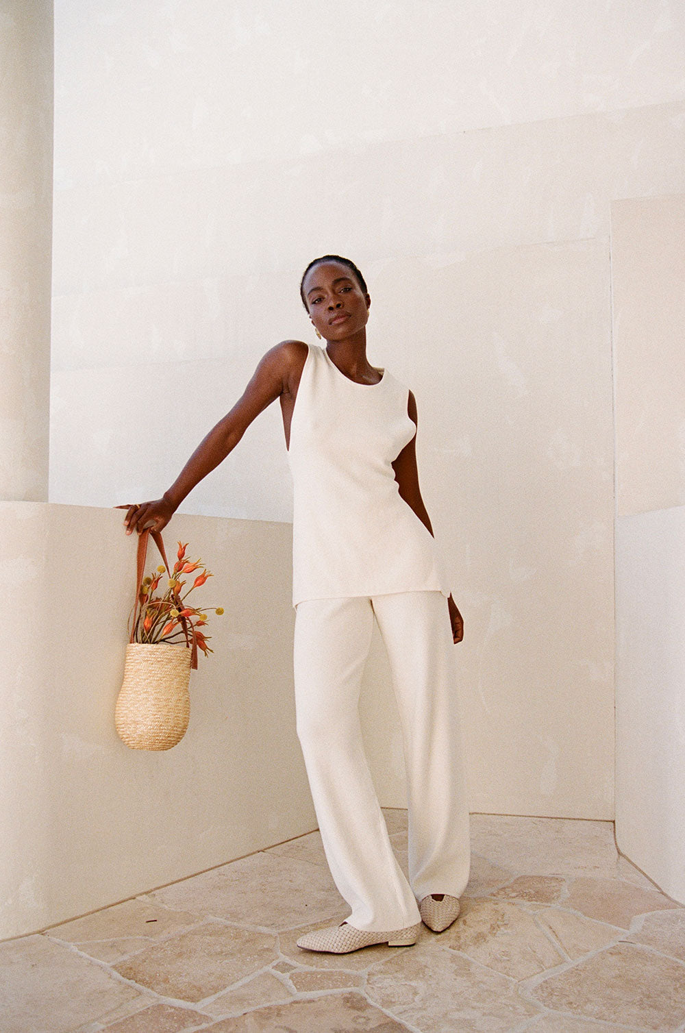 Level up your basics with the Sammi Top, made from a luxurious cotton blend knit in a cream hue. It is a relaxed style featuring a rounded neckline, tank sleeves with drop arm holes, splits at sides and a longline hem. Get the set and pair with the Sammi Pants! Designed exclusively by Sabo.