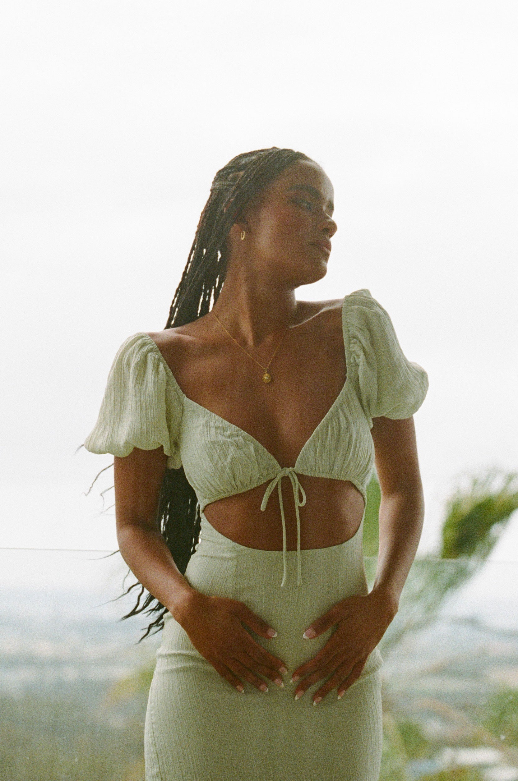 *THIS IS A SAMPLE* I am a one off Sabo Skirt sample of the Jacqui Cutout Dress. I have small faint black dot on my front right bust. I cannot be returned, so I'm all yours to love and wear as your very own.