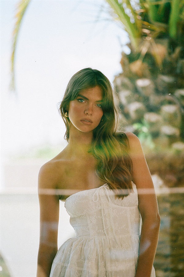 *THIS IS A SAMPLE* I am a one off Sabo sample of the Sahara Dress - White. As I was worn in a photo shoot, I have faint soiling throughout and have also been washed. I cannot be returned, so I'm all yours to love and wear as your very own.
