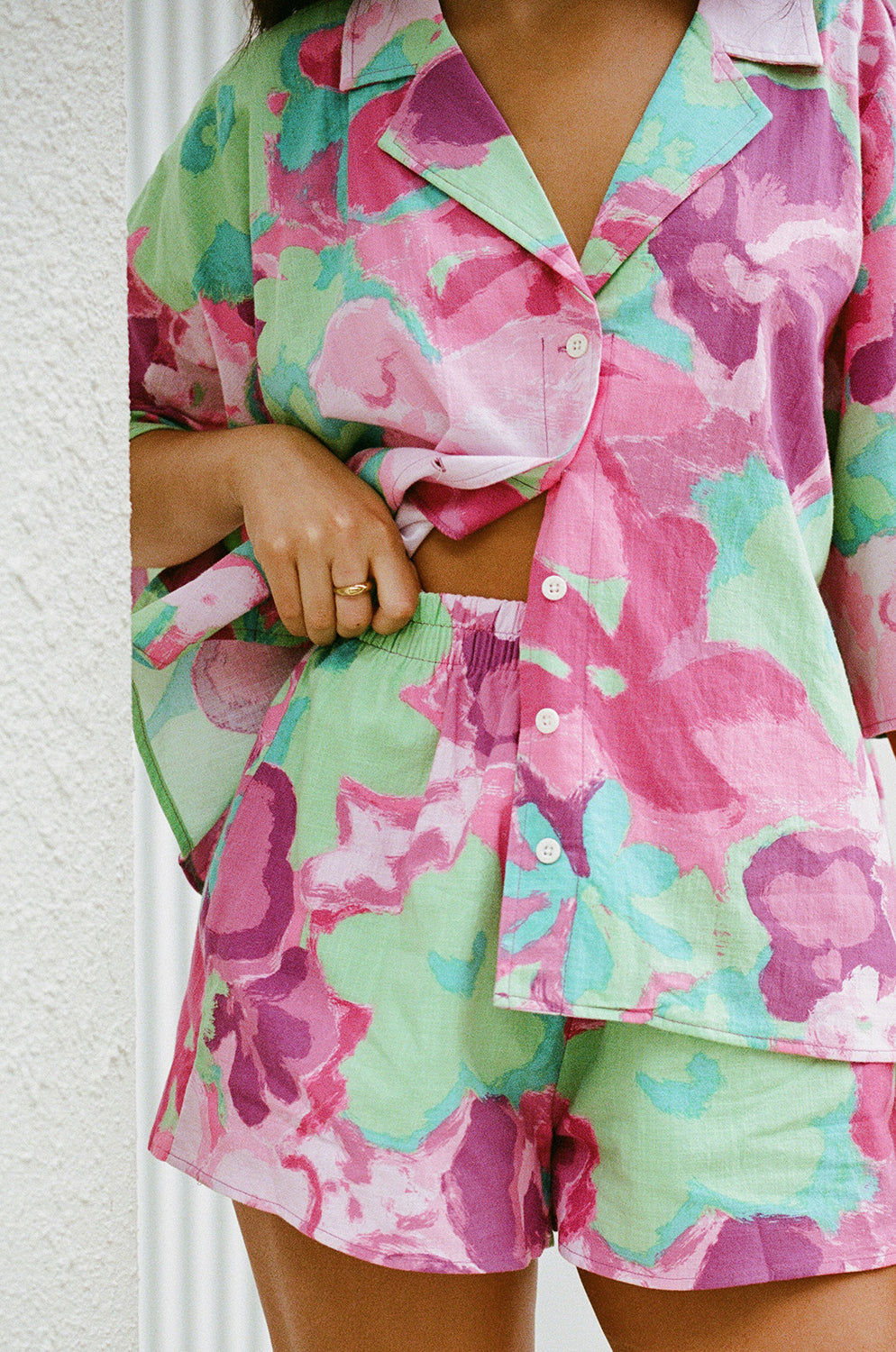 *THIS IS A SAMPLE* I am a one off Sabo Skirt sample of the Seona Shorts - Feliz Purple. I have very small faint brown mark on the front right side of my shorts. I cannot be returned, so I'm all yours to love and wear as your very own.
