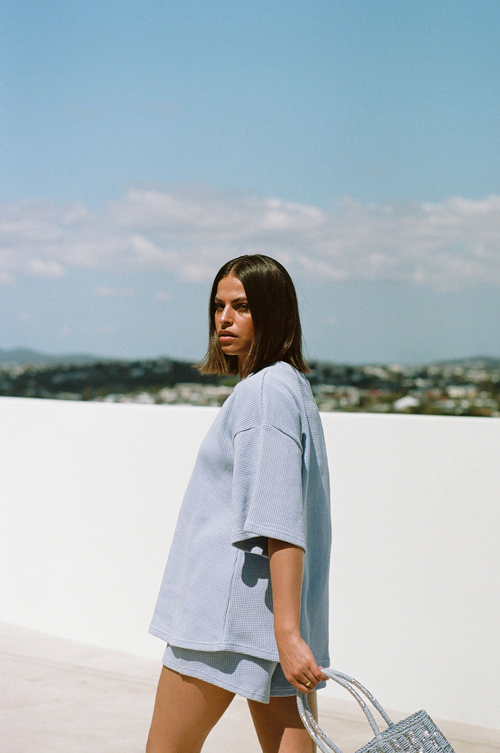 *THIS IS A SAMPLE* I am a one off Sabo Skirt sample of the Wanderer Top - Cornflour. I have a faint yellow mark on my front left near my sleeve. I cannot be returned, so I'm all yours to love and wear as your very own.