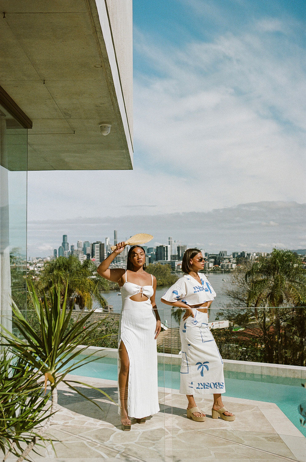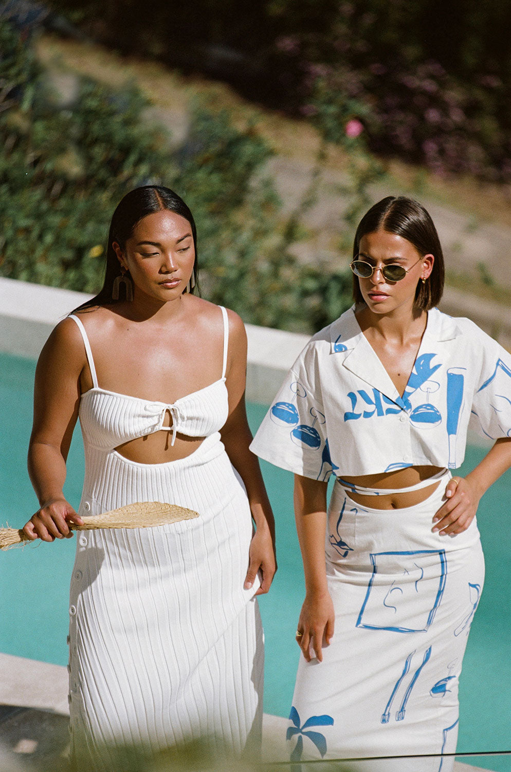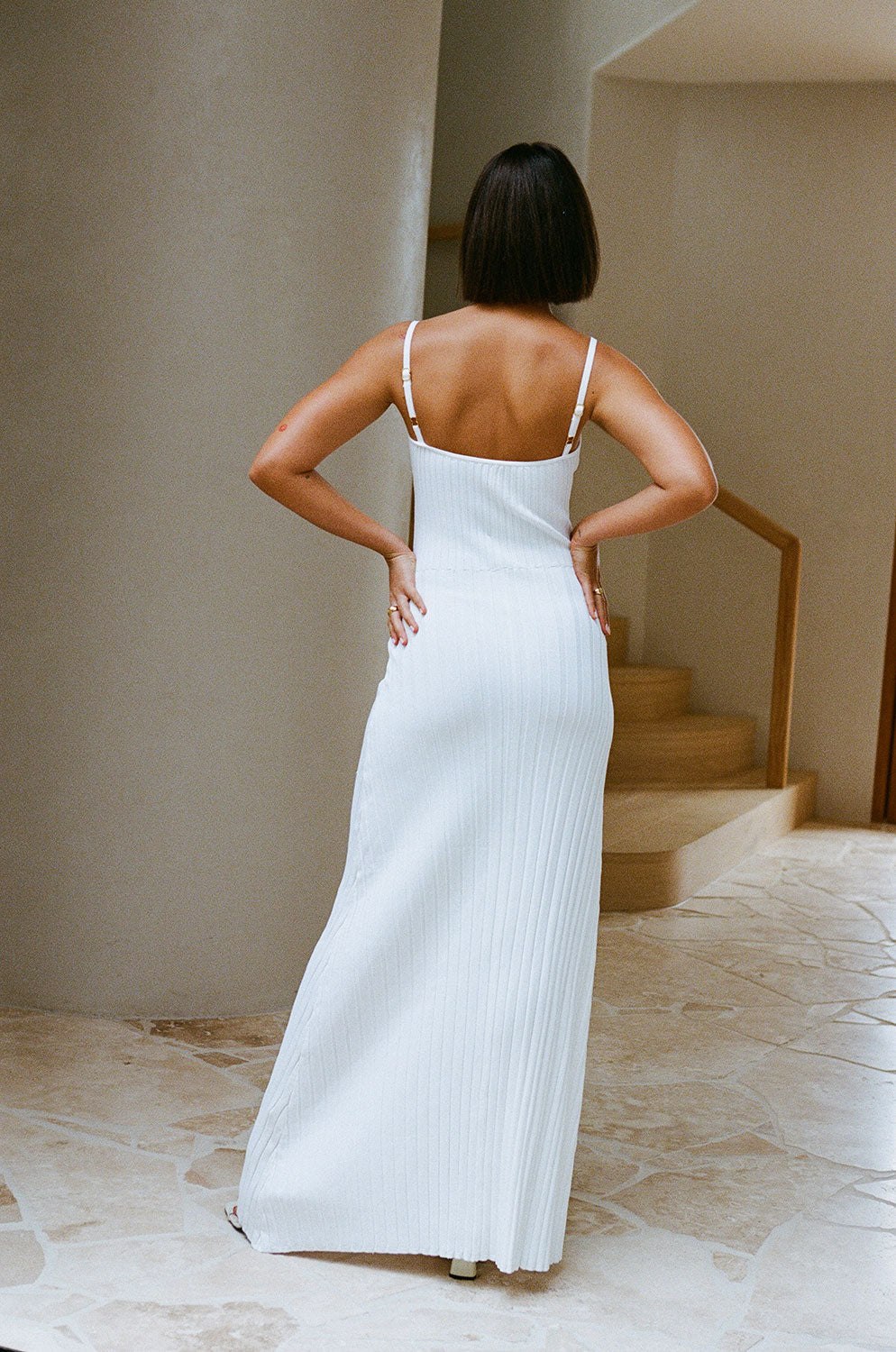 A classic wardrobe piece perfect for a long lunch to an event! The Snowy Dress is made from a high quality pleated rib fabric in white. It features thin adjustable straps, keyhole cutout and draw tie at centre bust, cutout at waist and a flared maxi skirt with split and button details. Add a pop of colour with the Galia Block Heels! Designed exclusively by Sabo.