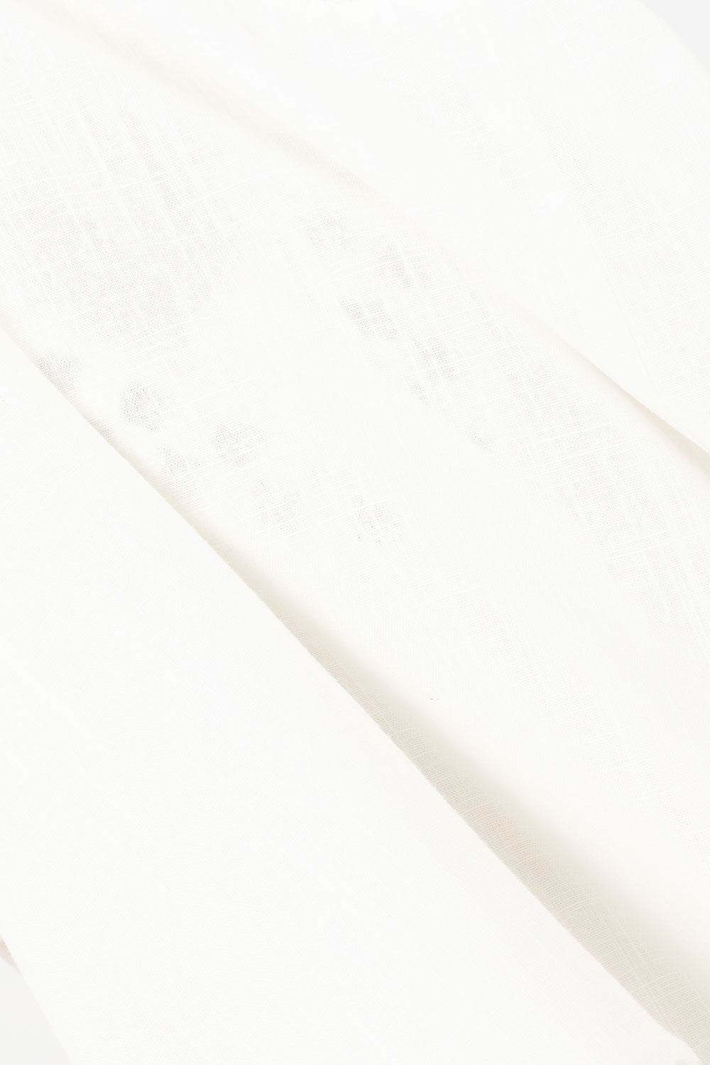 Dripping in details, the Soraya Top is made from a high quality sand washed linen viscose blend fabric in an off white hue. It is a relaxed style featuring a plunging V neckline, buttons down centre front, deep armholes, longline hem and sheer ladder and wavy trim details. Get the look with the Soraya Shorts or pair with the Alyssia Pants! Designed exclusively by Sabo.