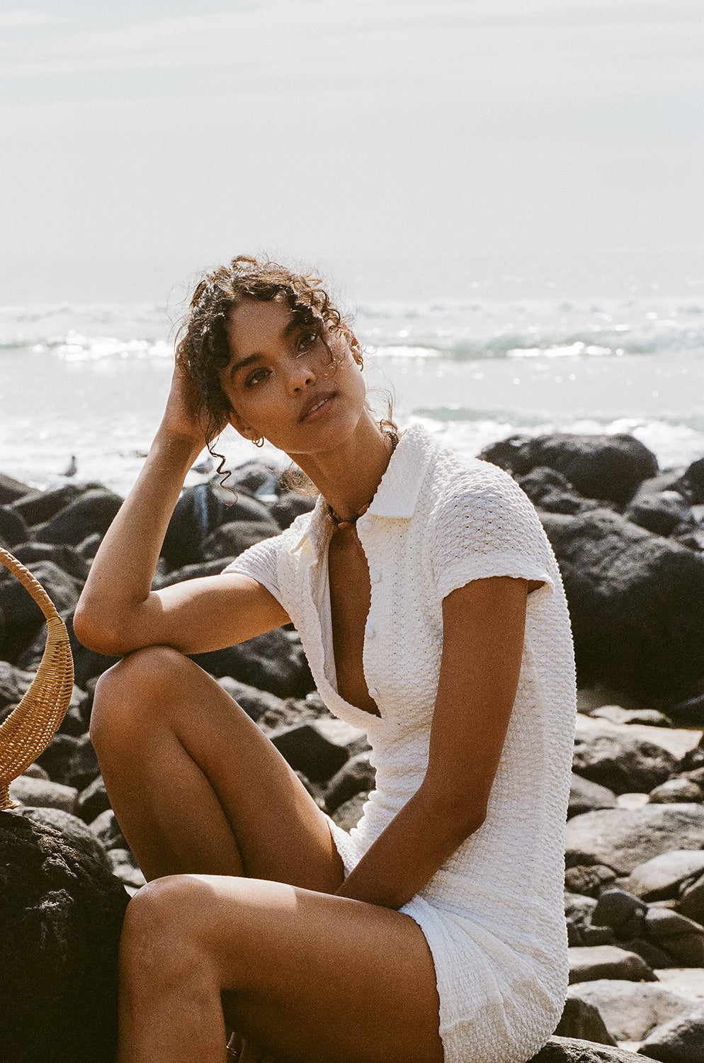 A stylish casual look in the most stunning textured bubble fabric, the Stasia Dress is a fitted mini style featuring a collar with buttons at centre front. Dress it up with boots for the cooler months or some chunky sandals! Designed exclusively by Sabo.