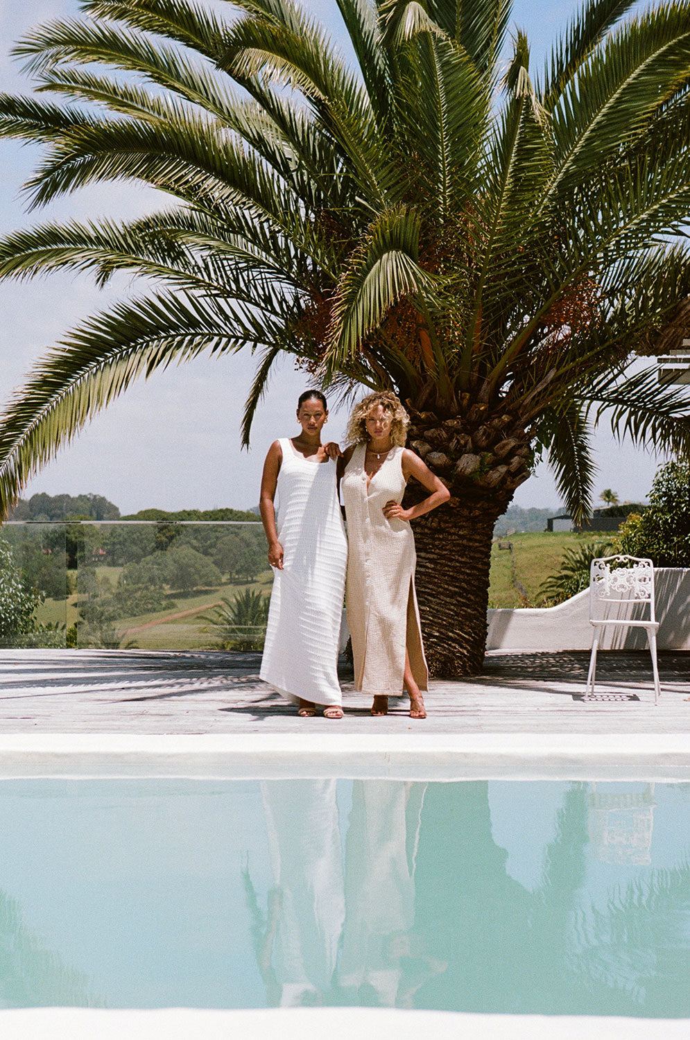 A chic fashion-forward look! The Tala Dress is made from a natural cotton textured waffle fabric in a beige hue. It features a V neckline, contrast white buttons down centre front and a midi length skirt with splits at sides. Style your look with neutral slides! Designed exclusively by Sabo.