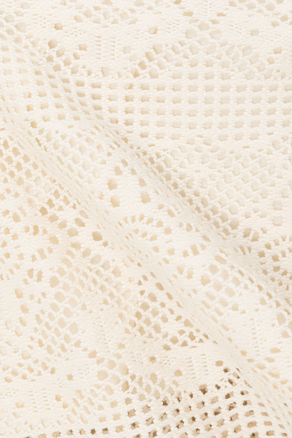 The ultimate summer vacation staple to take you from day to night! The Wren Dress is made from a luxurious crochet fabric in white. It features unlined sheer long boxy sleeves, V neckline with keyhole and strap detail, fitted waist with gathered details at sides and a mini skirt. Designed exclusively by Sabo.