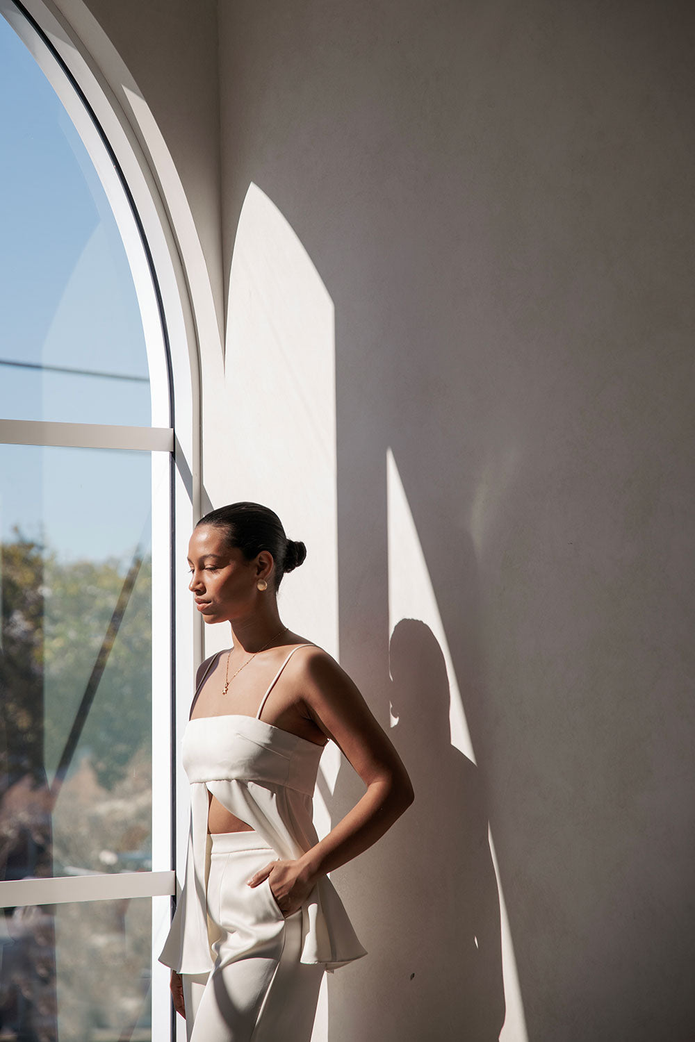 Clean lines and a design to flatter, the Xandra Top is made from a silky fabric in an ivory hue. It features thin adjustable rouleau straps, straight neckline and a babydoll fall with a split at centre front. Get the set and pair with the Xandra Pants! Designed exclusively by Sabo.