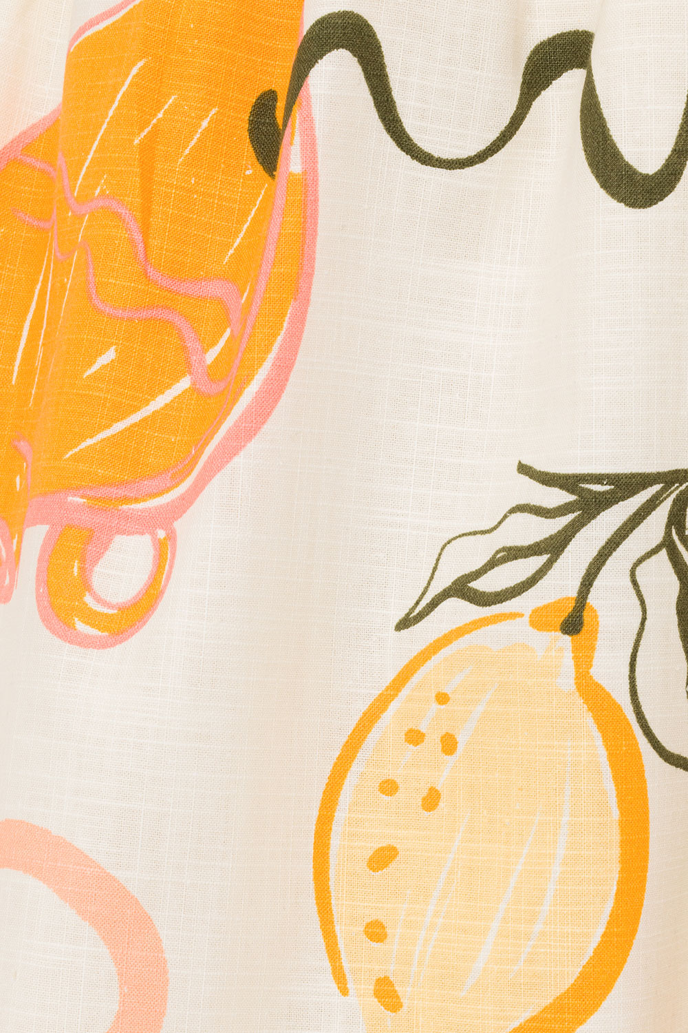 A must-have versatile vacation look! The Zenaida Dress is made from a high quality natural cotton slub fabric with our exclusive amalfi aperol print. It is a strapless style featuring elasticated panels across neckline, under bust and waist, tie at neckline, cutouts at waist and a flouncy mini skirt. Keep it casual with slides or dress it up with Savannah Heels! Designed exclusively by Sabo.